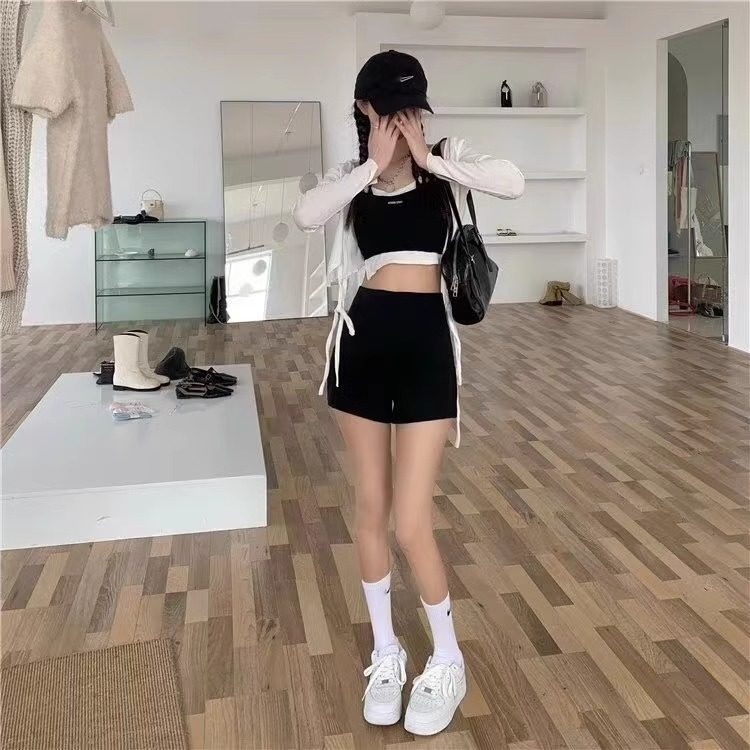 Летние эластичные шорты, черные штаны, пиджак классического кроя, большой размер, высокая талия, А-силуэт