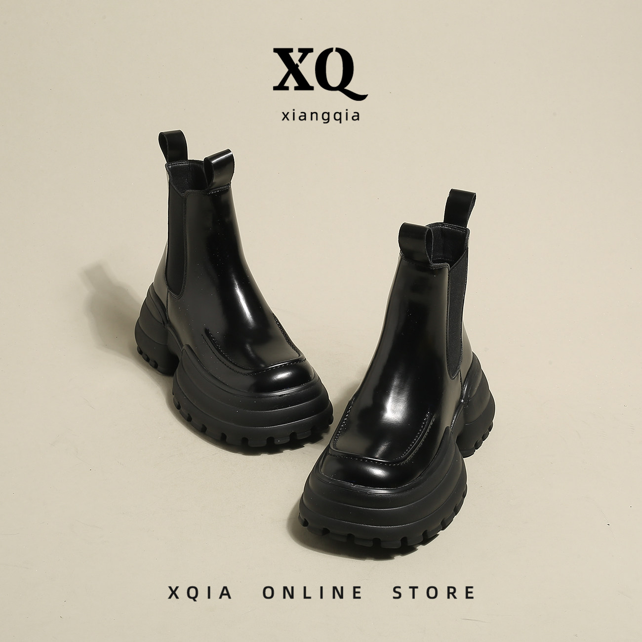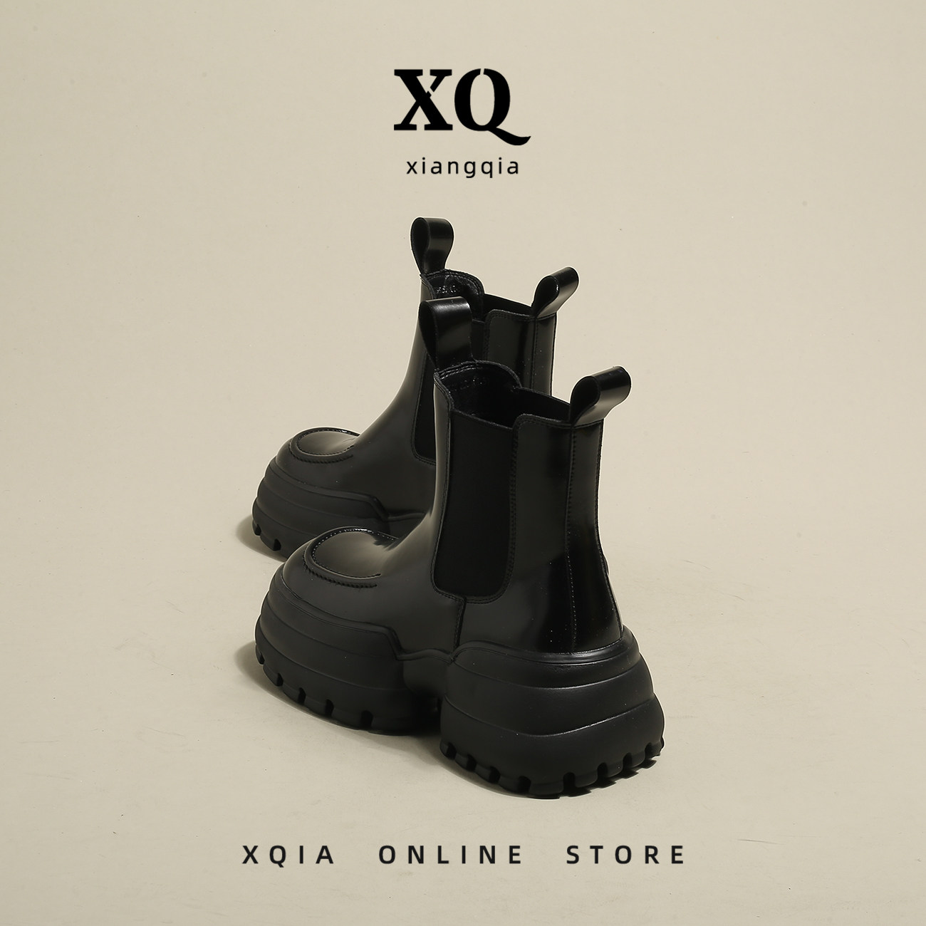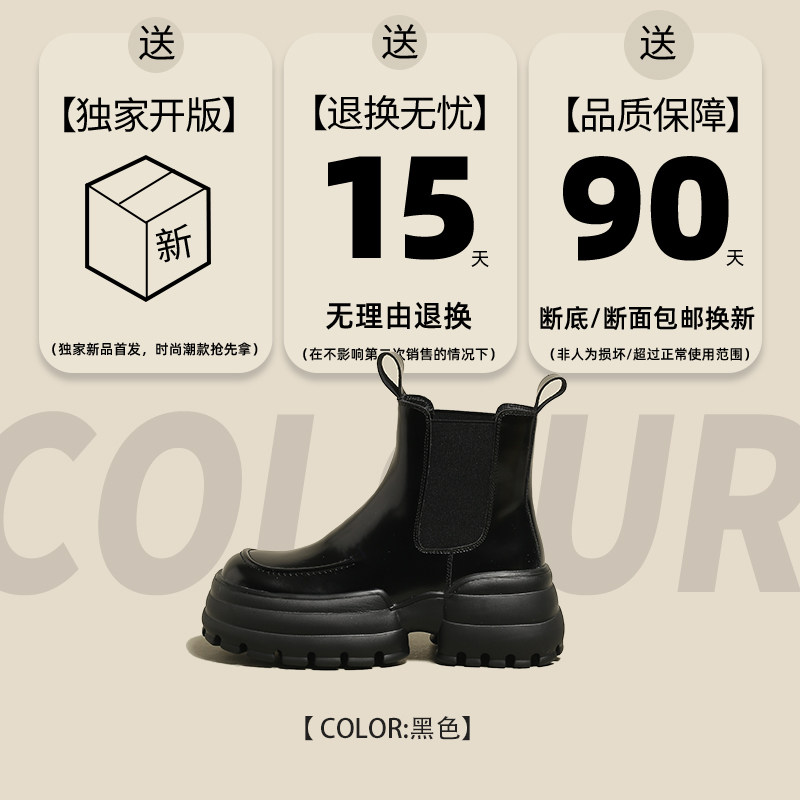 [Xqia] Отвечает стоимость лица ~ Супер красиво!Черные табачные ботинки женские толстые нижние сапоги Челси Martin Short Boots