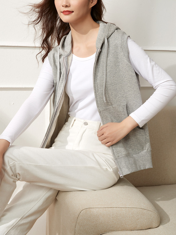 Хлопковый демисезонный жилет, спортивный осенний кардиган для отдыха без рукавов с капюшоном, куртка, 2023