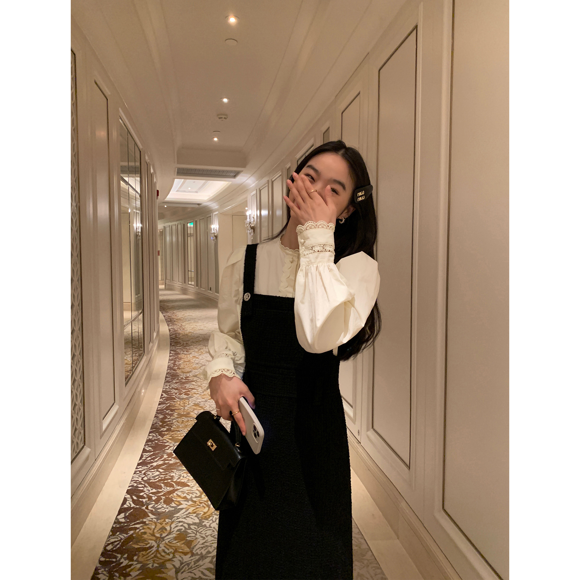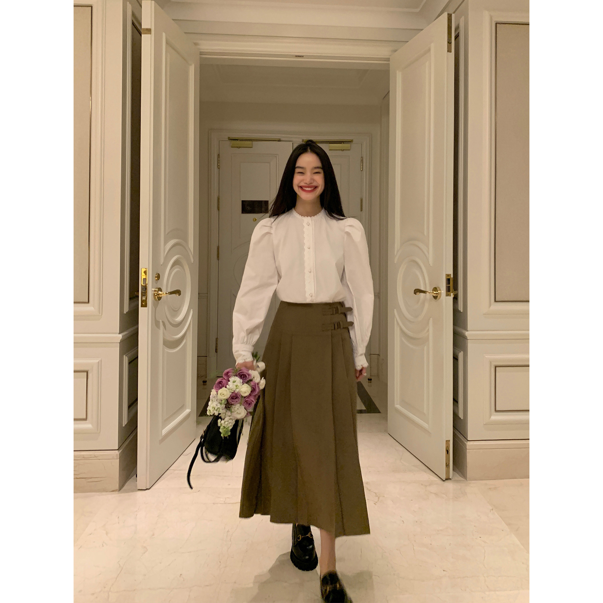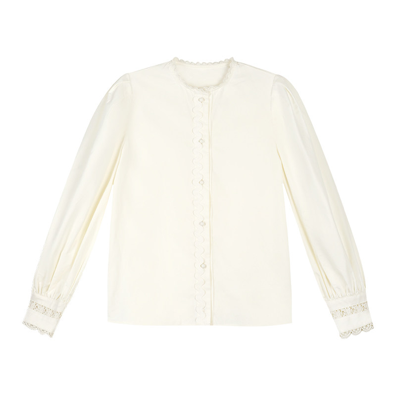 pusumede Белая дизайнерская рубашка, рукава фонарики, французский стиль, тренд сезона