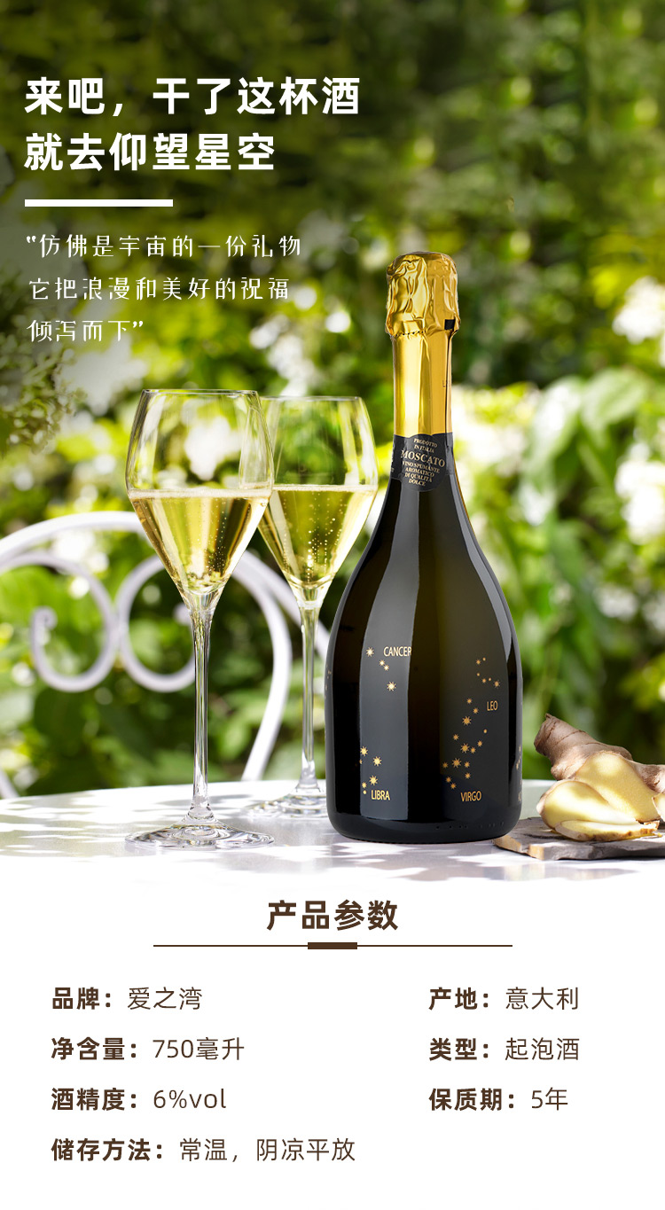 [Самостоятельная занятость] Ай Чживан Созвездие Москат Варело романтический романтический итальянский импортный сладкий вино слегка слабый