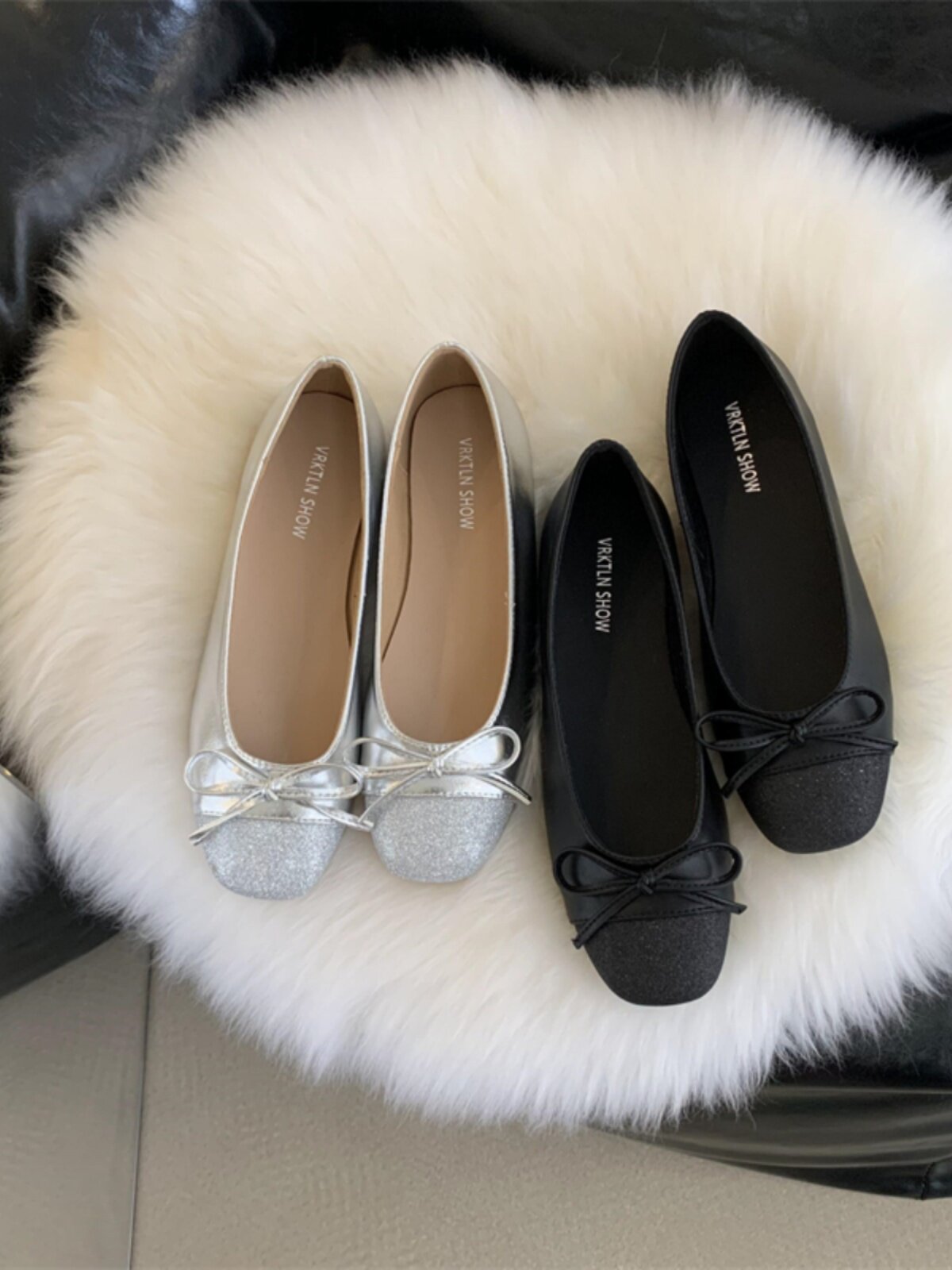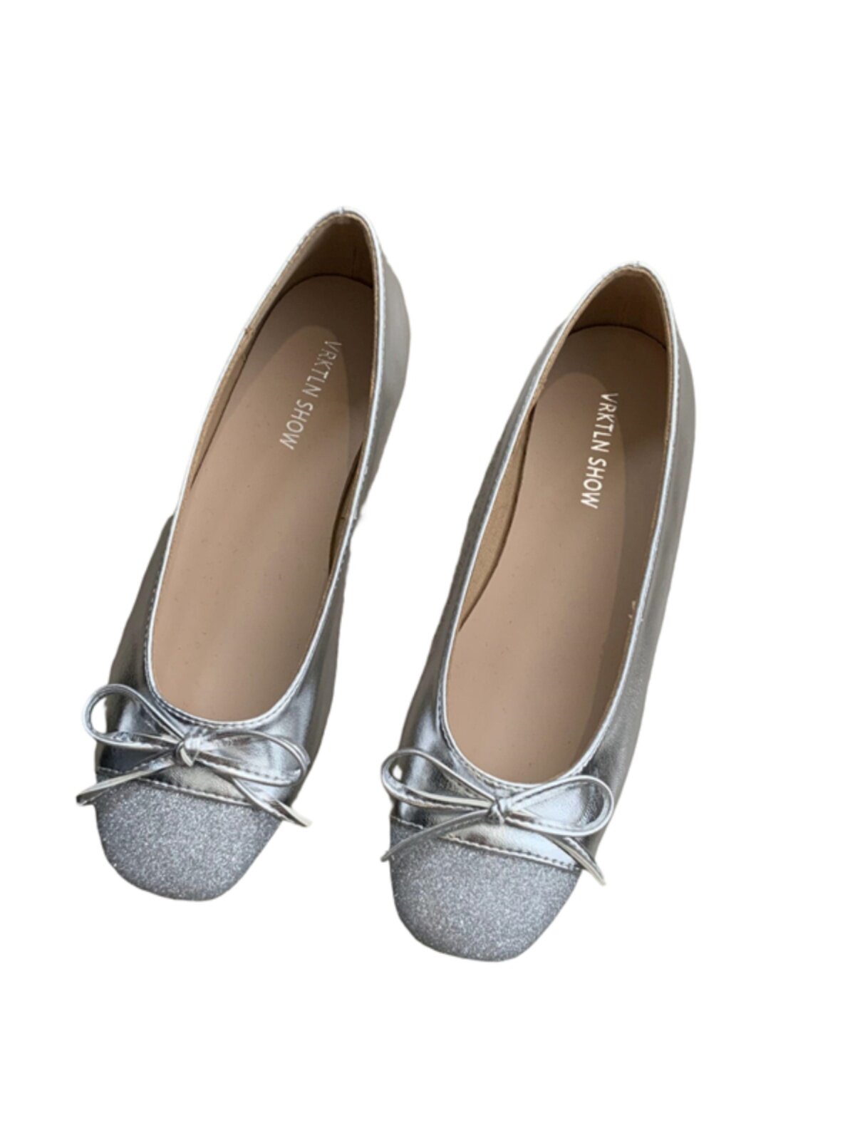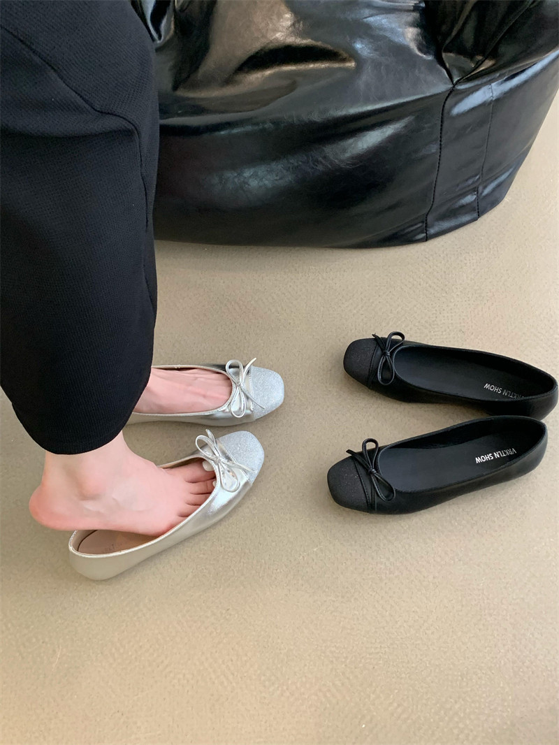 Серебряная обувь с бантиком, в стиле Шанель, модель весна/осень 2024 года