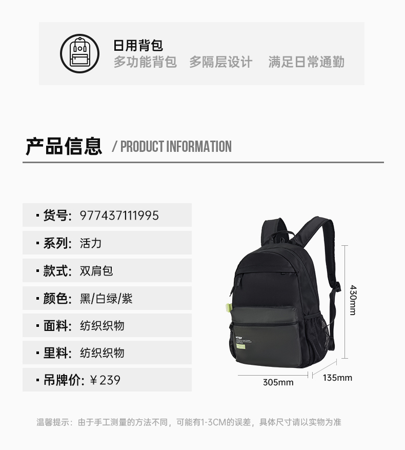 Xtep, рюкзак подходит для мужчин и женщин, вместительный и большой ноутбук, осенний