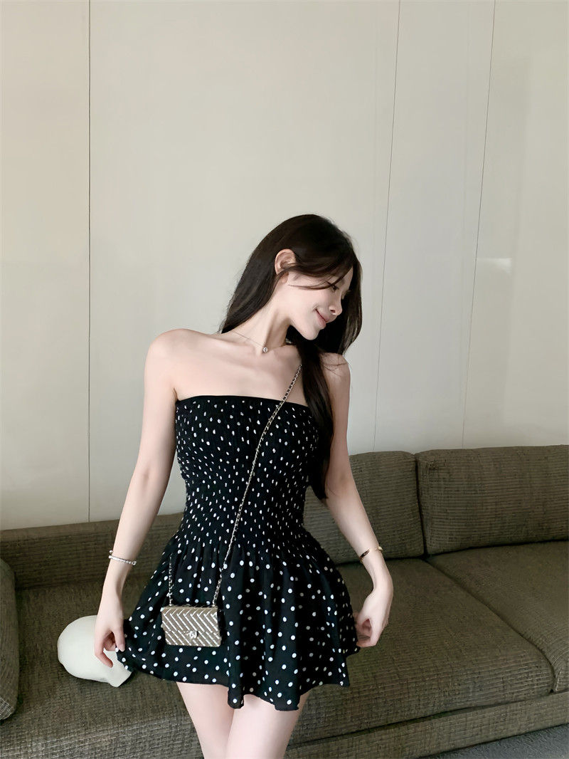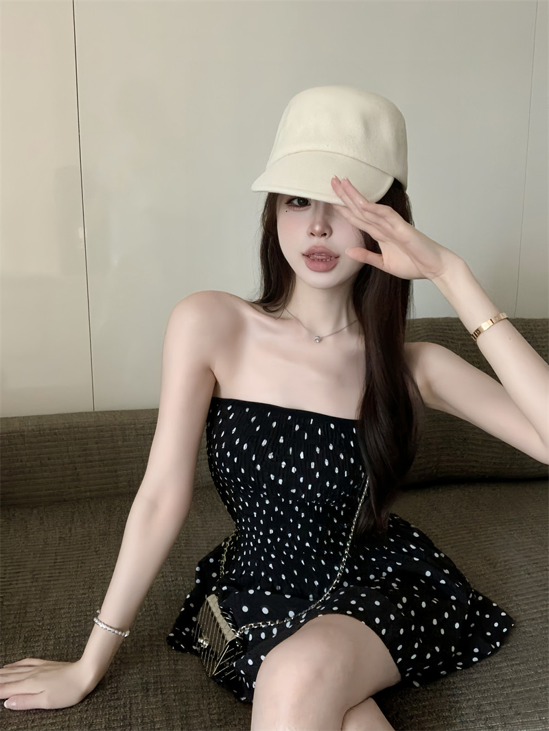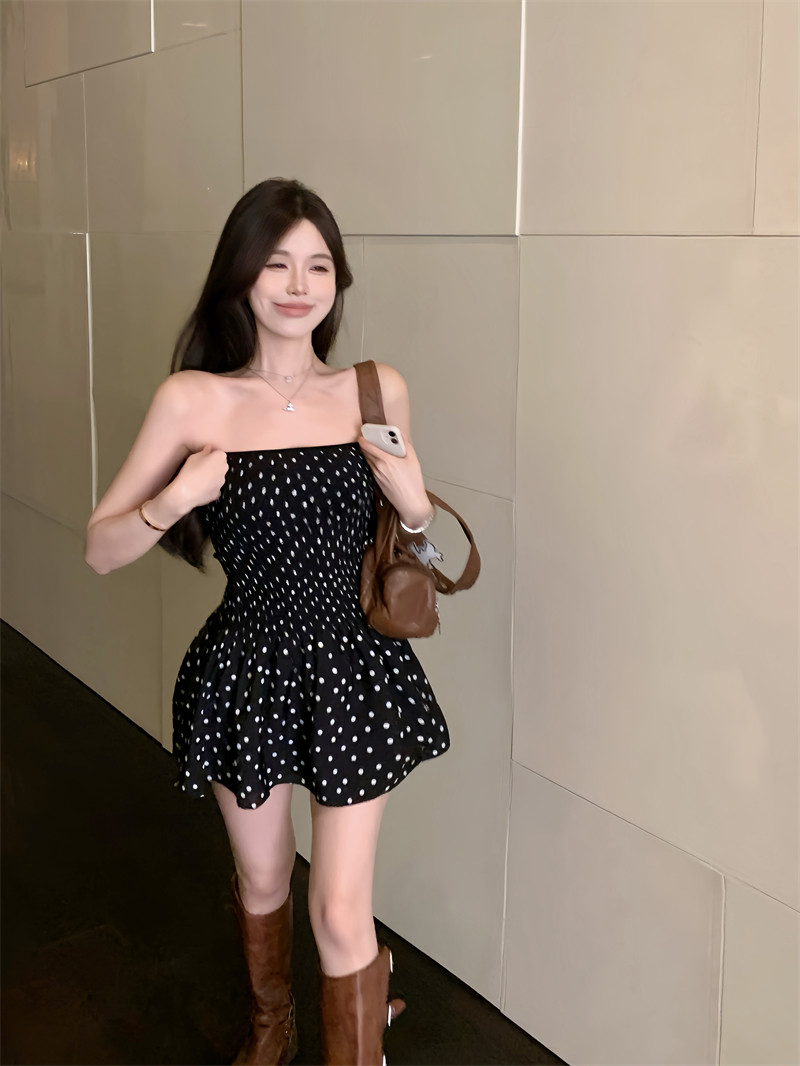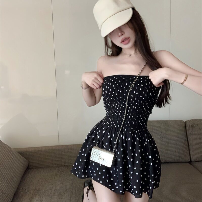 Ретро топ без лямок, платье, сексуальная черная короткая юбка, французский стиль, открытые плечи