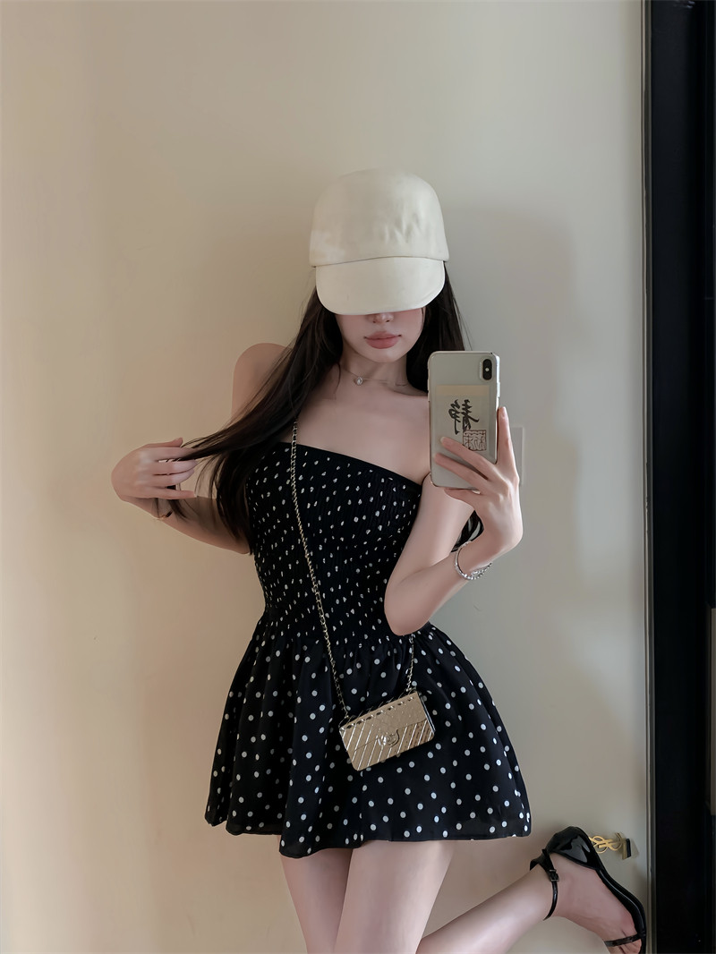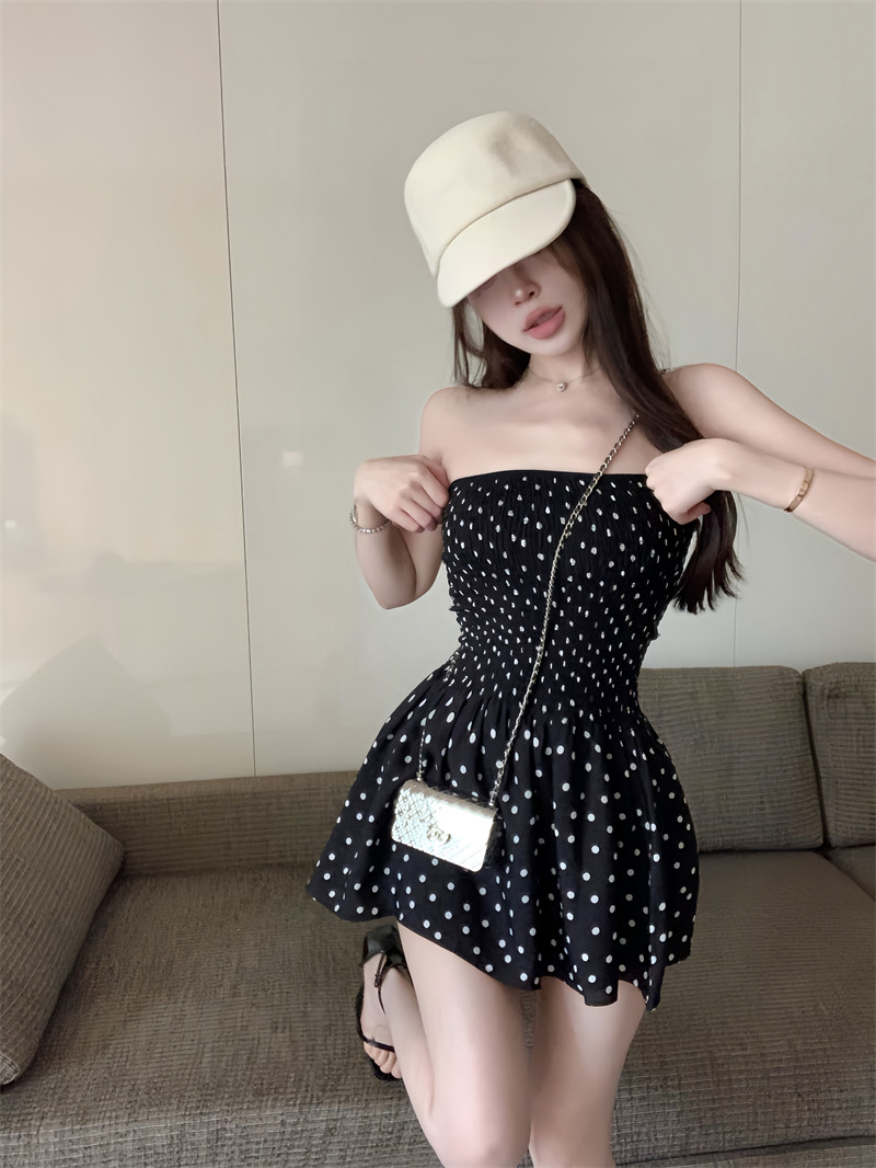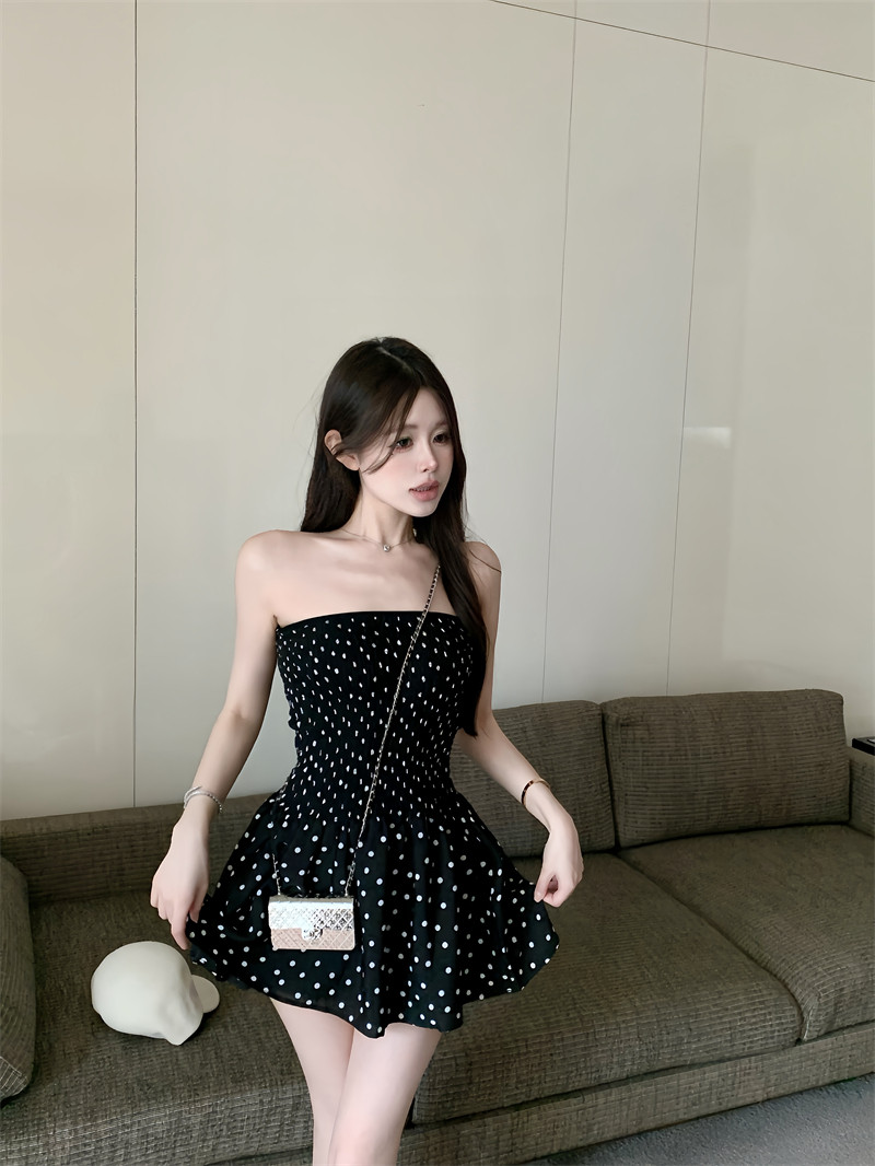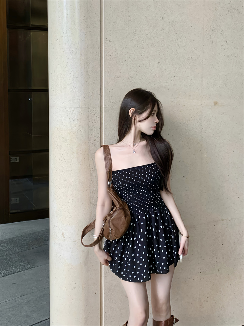 Ретро топ без лямок, платье, сексуальная черная короткая юбка, французский стиль, открытые плечи