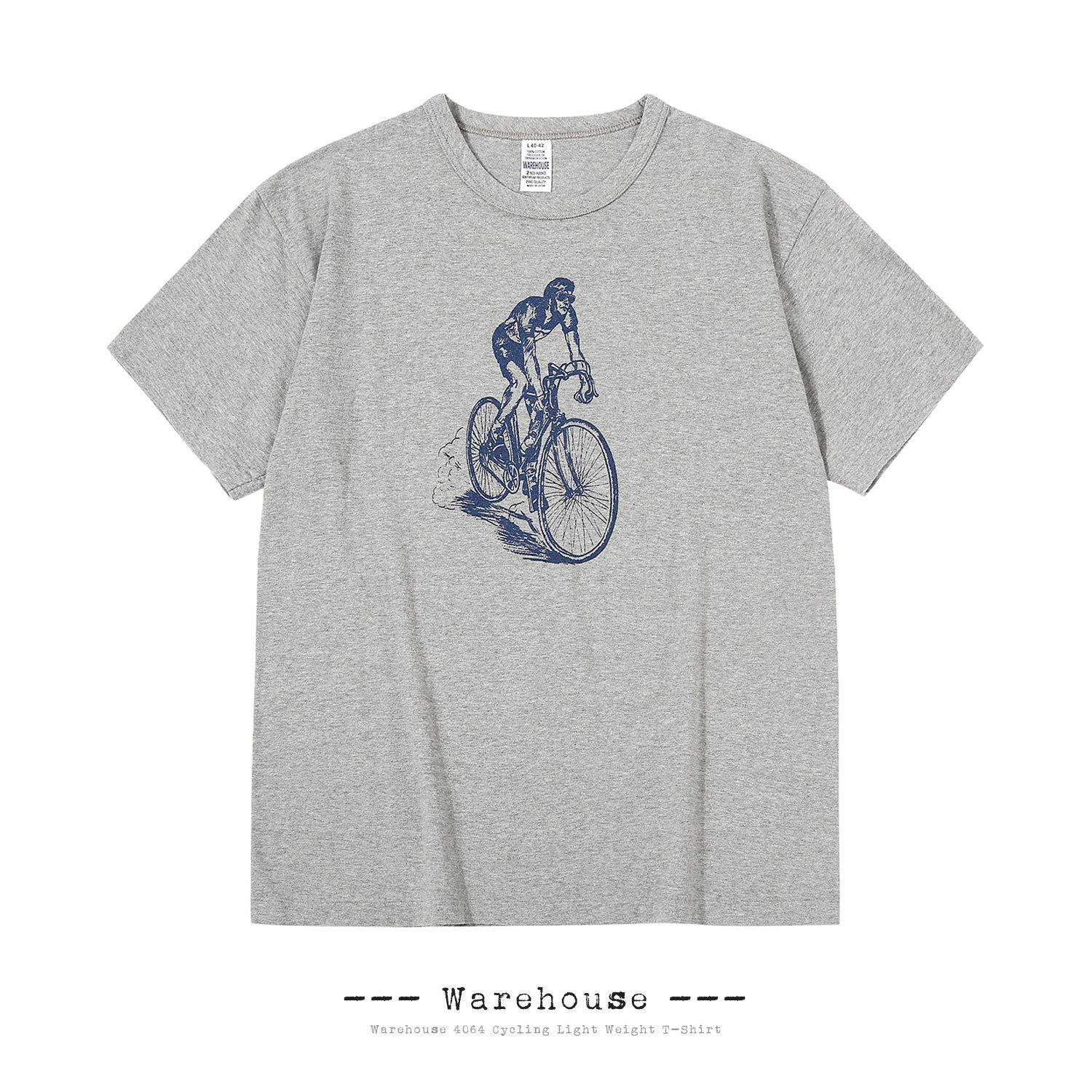 WAREHOUSE 4064 2-й велосипедная ежедневная ретро-картинка Круглый воротник с короткими рукавами
