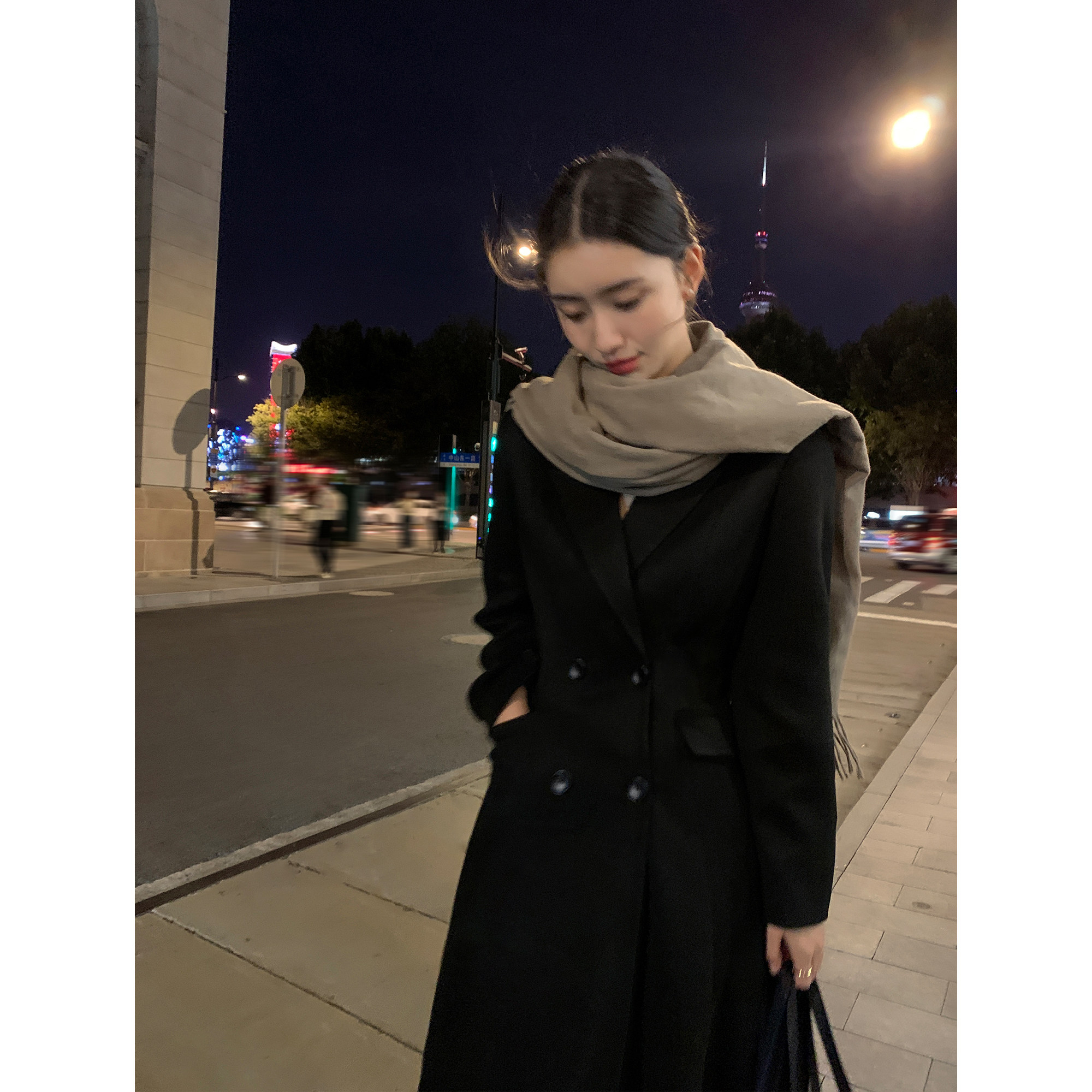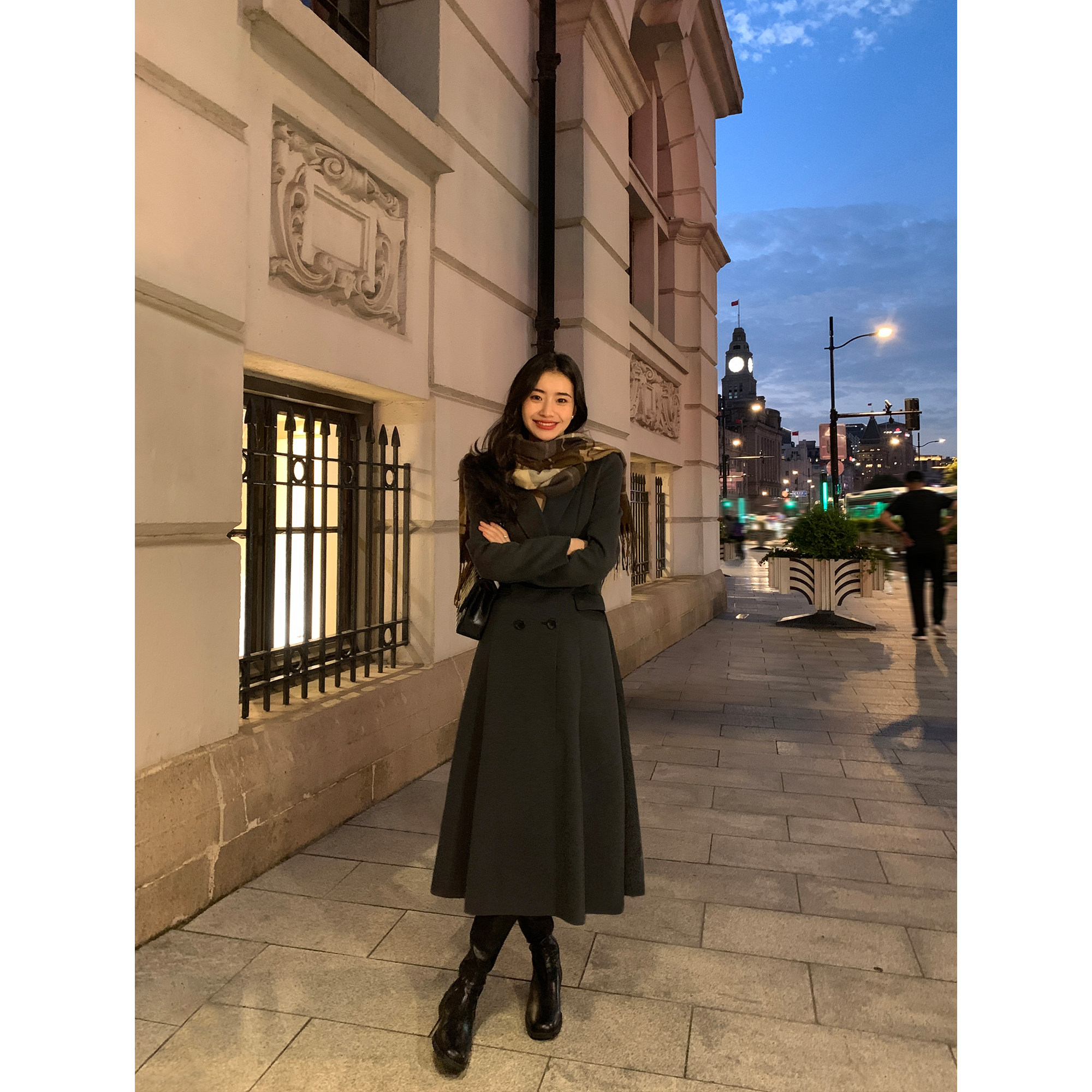 pusumede Черное шерстяное пальто, куртка, приталенный длинный корсет, изысканный стиль, городской стиль