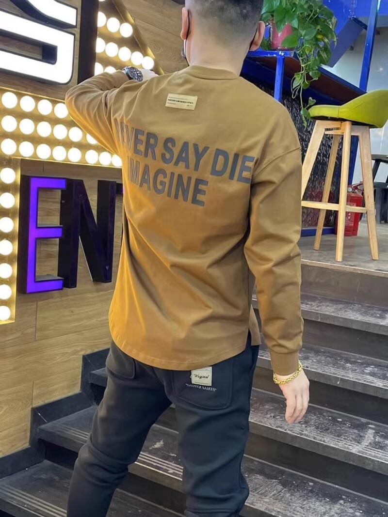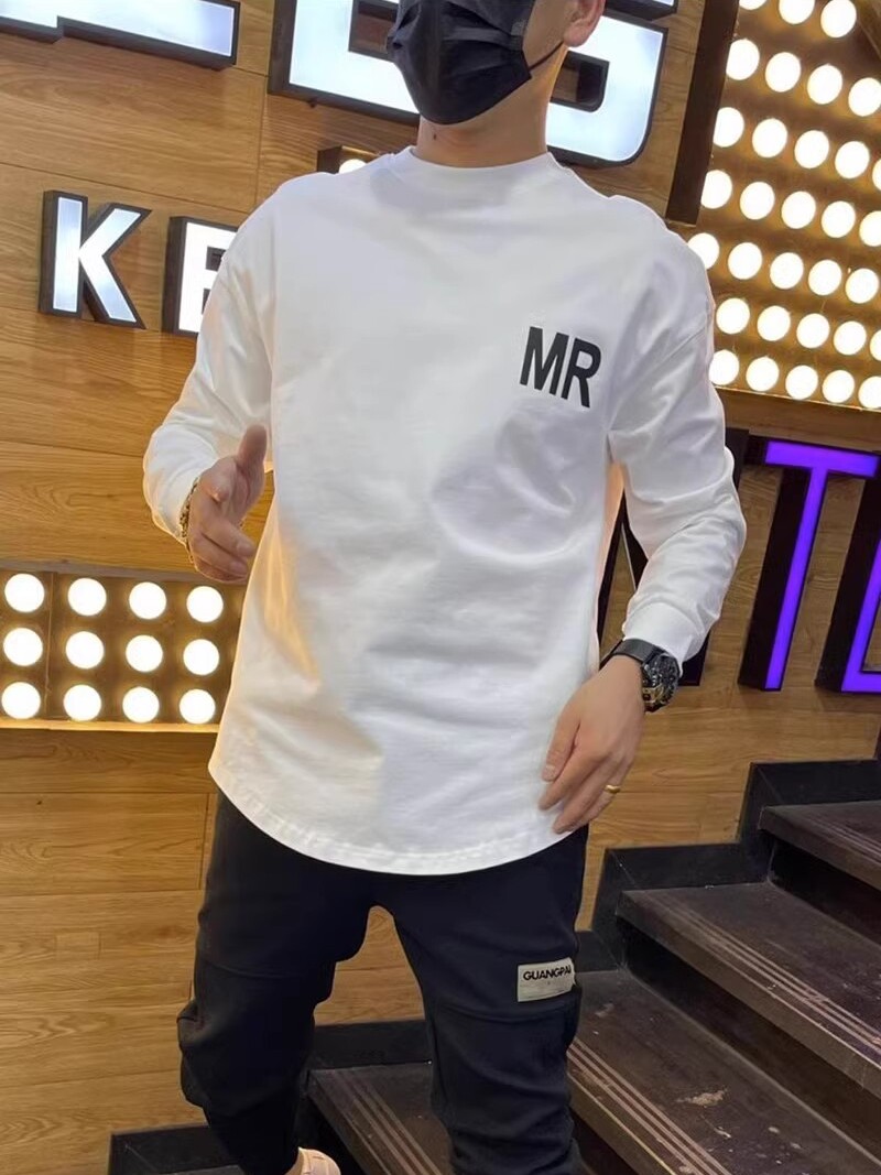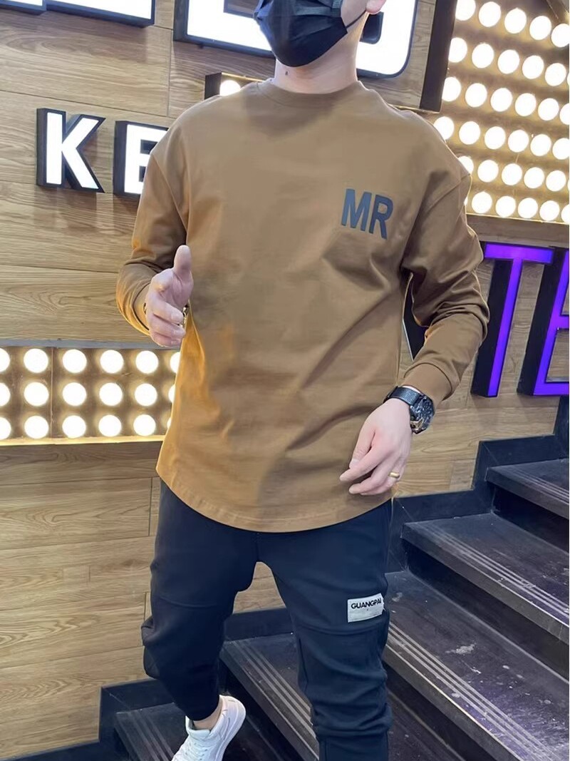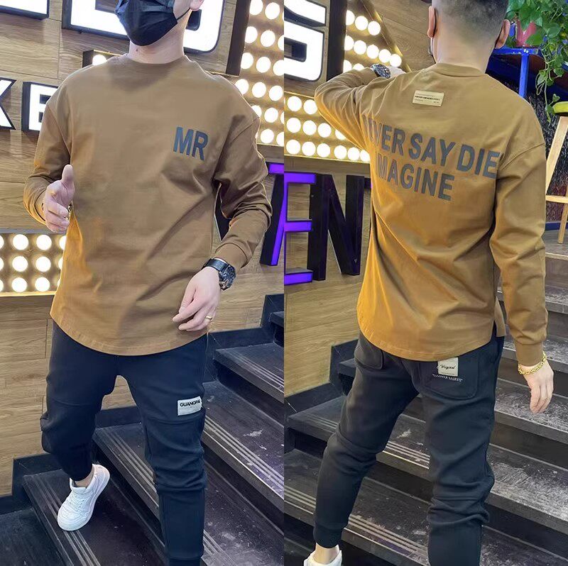 Осенняя спортивная футболка с круглым воротником для отдыха, универсальный лонгслив