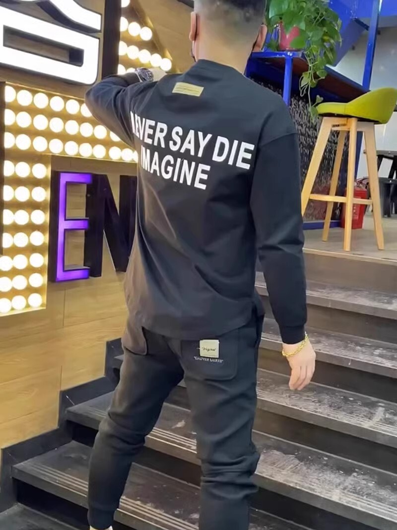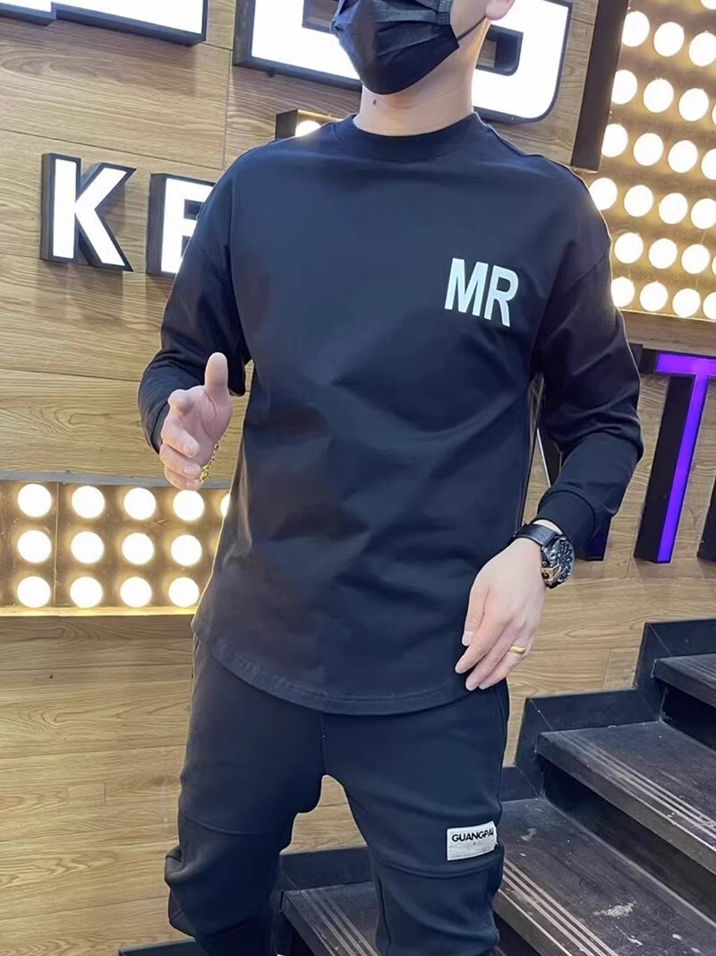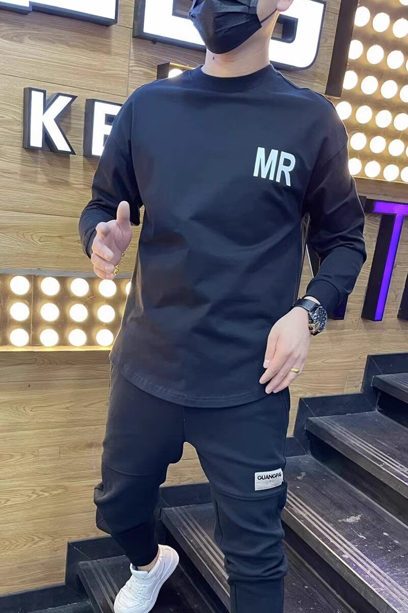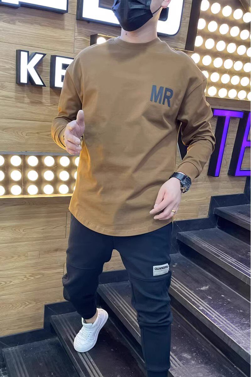 Осенняя спортивная футболка с круглым воротником для отдыха, универсальный лонгслив