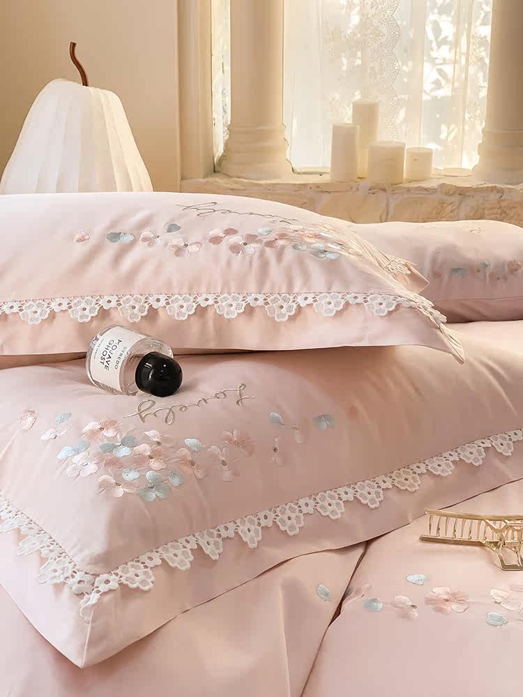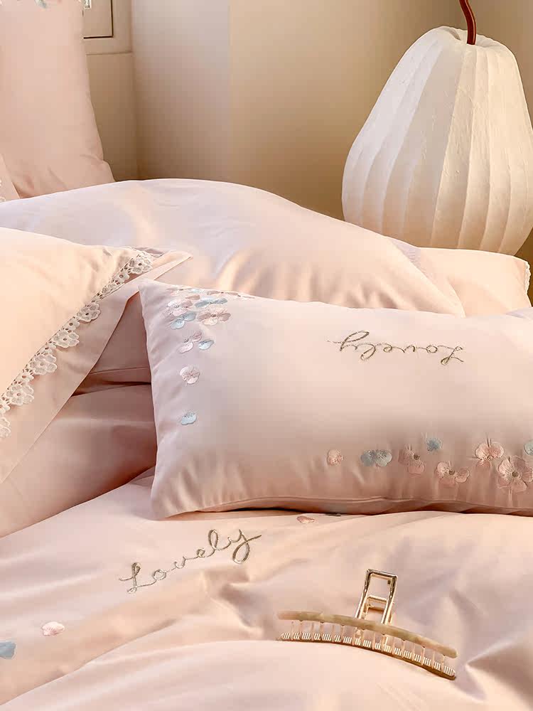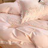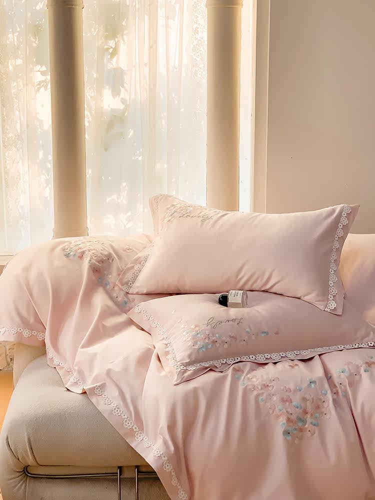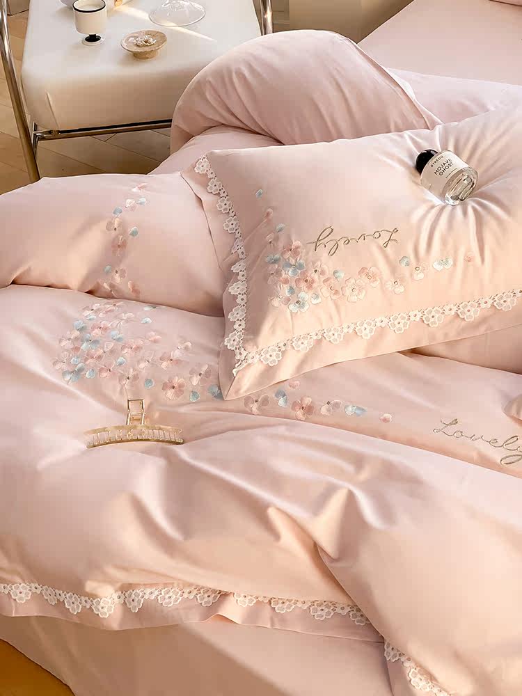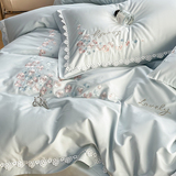 Хлопковый комплект, пододеяльник, простыня, покрывало, легкий роскошный стиль, 100 шт, 4 предмета, с вышивкой