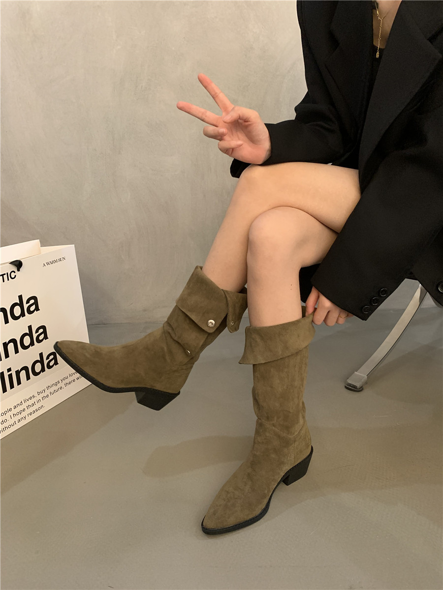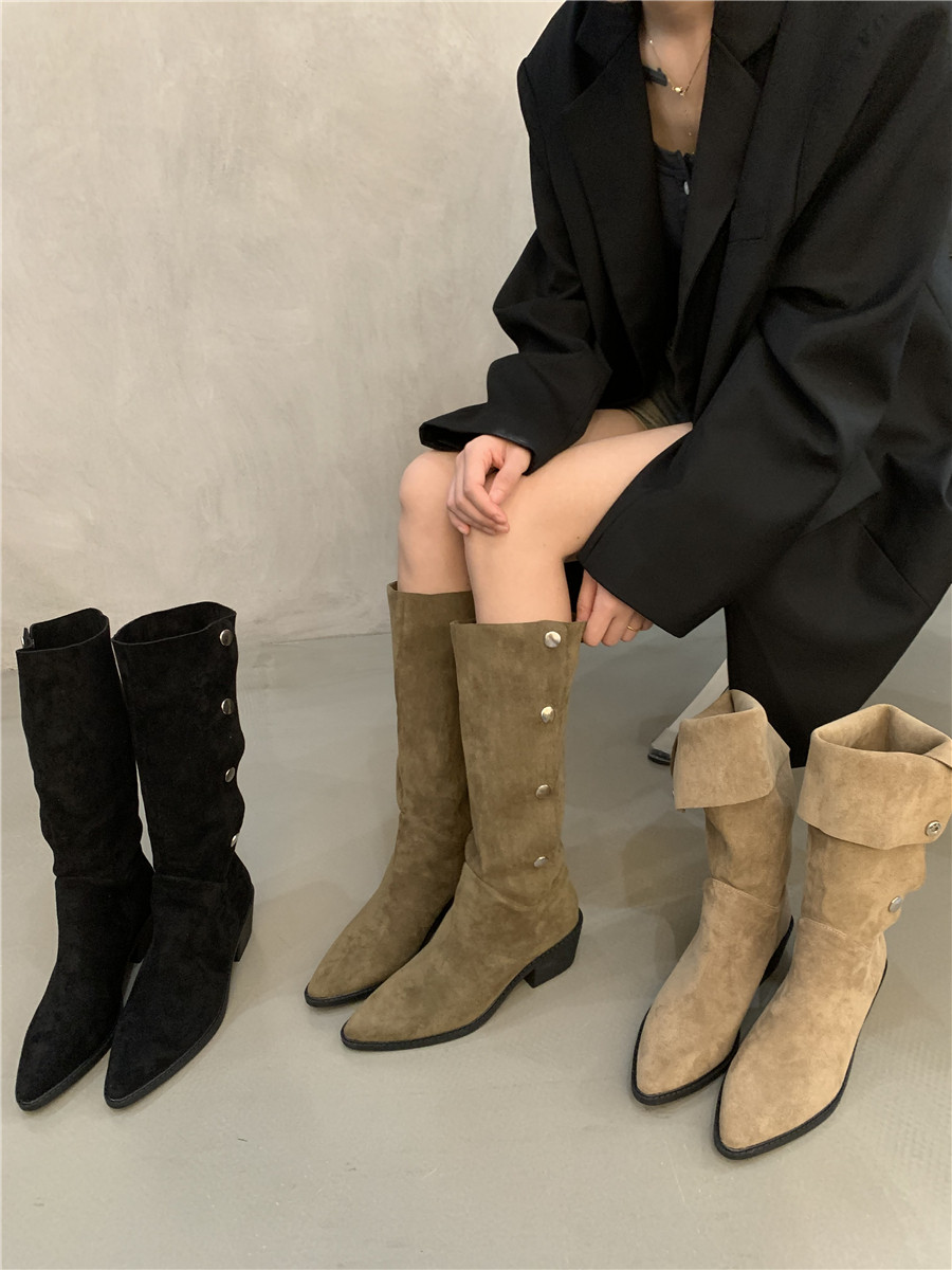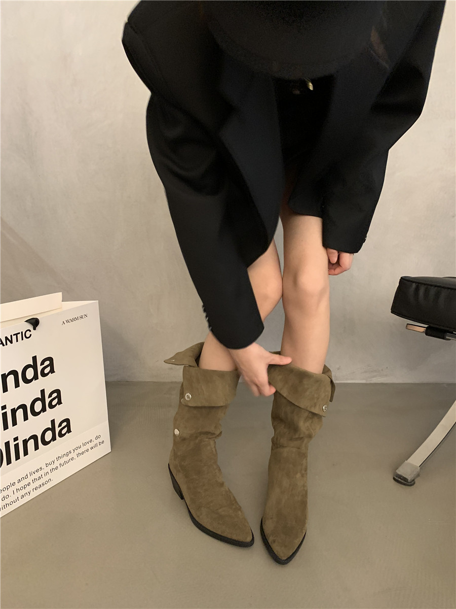 Сумка, высокие сапоги, коричневые джинсовые ботинки, подходит для подростков, французский стиль