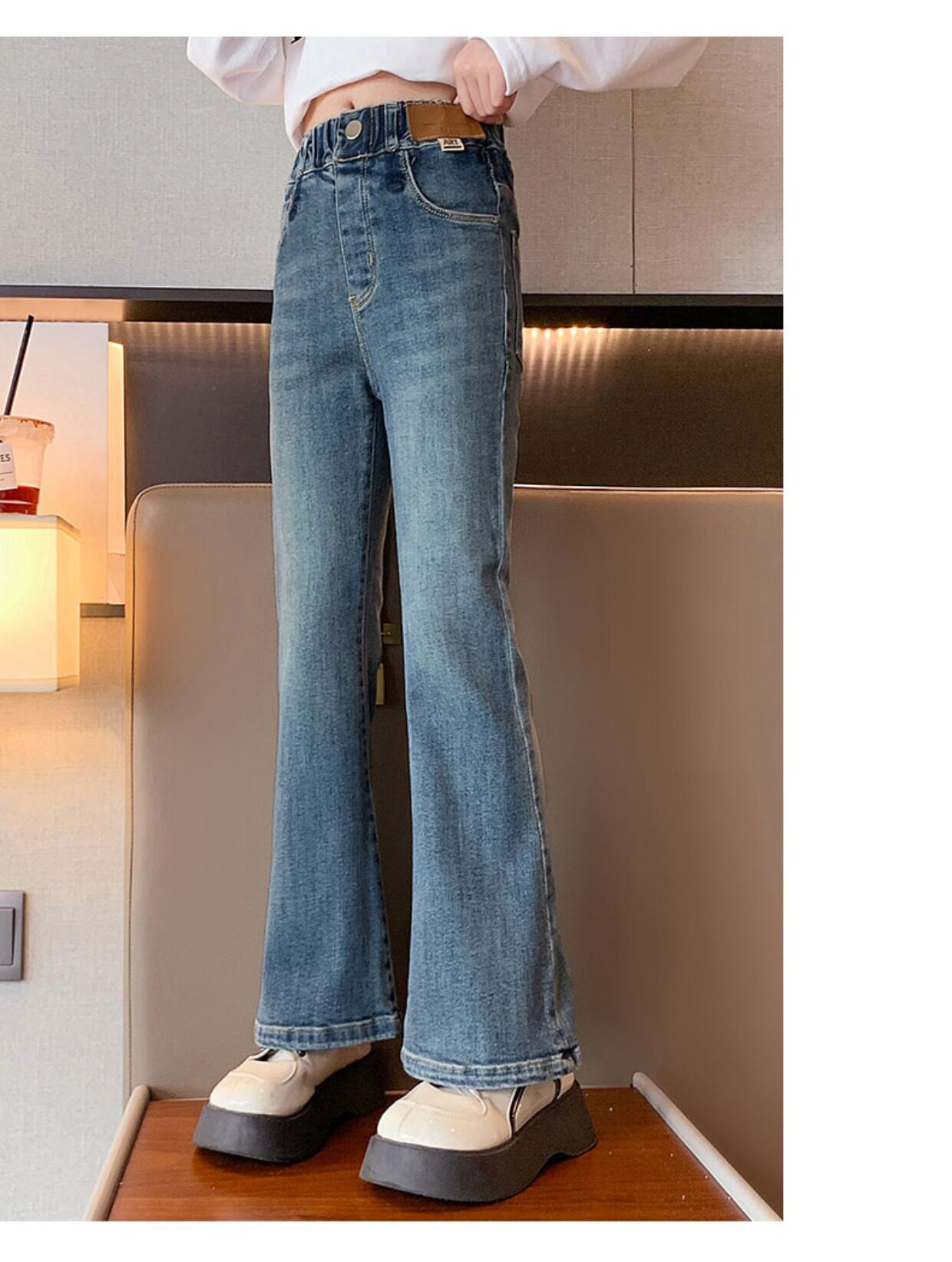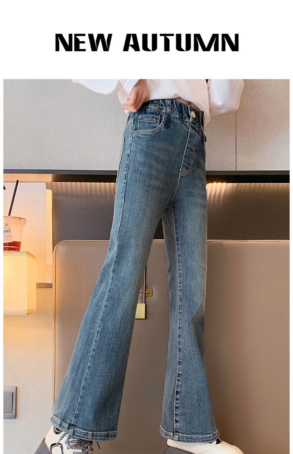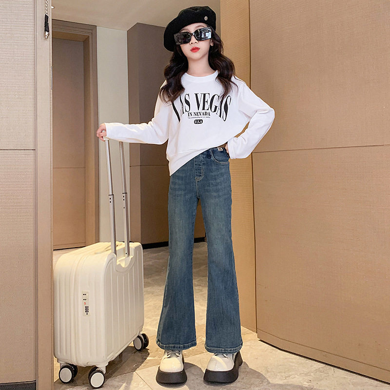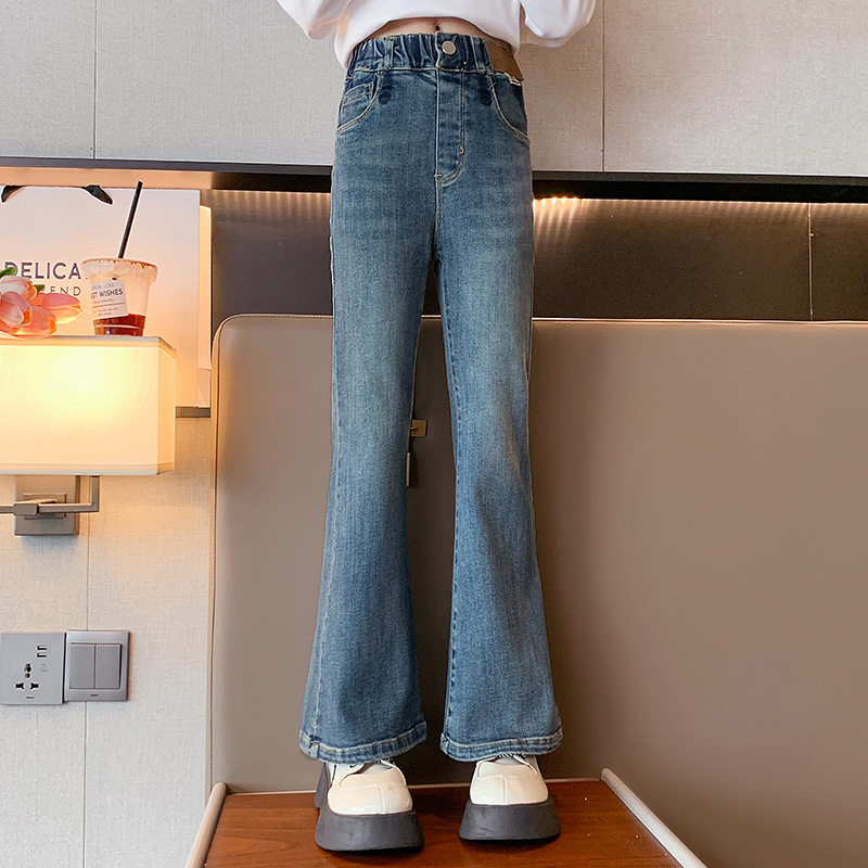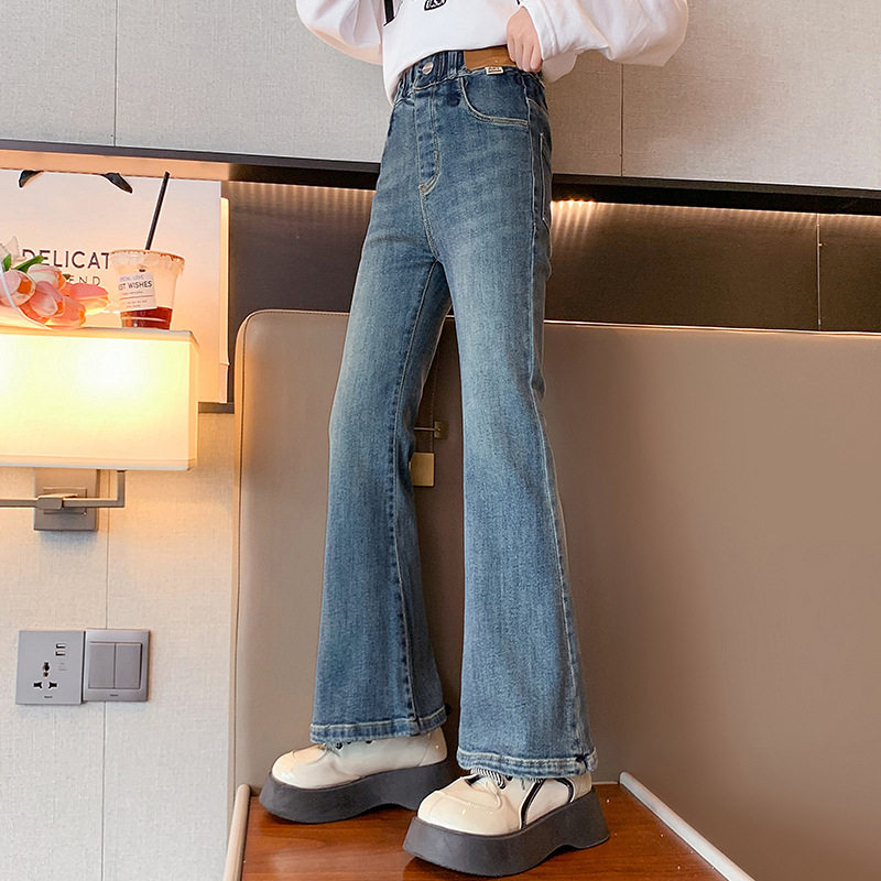 Джинсы, штаны, осенние штаны-клёш, новая коллекция, для средней школы, подходят для подростков, облегающий крой