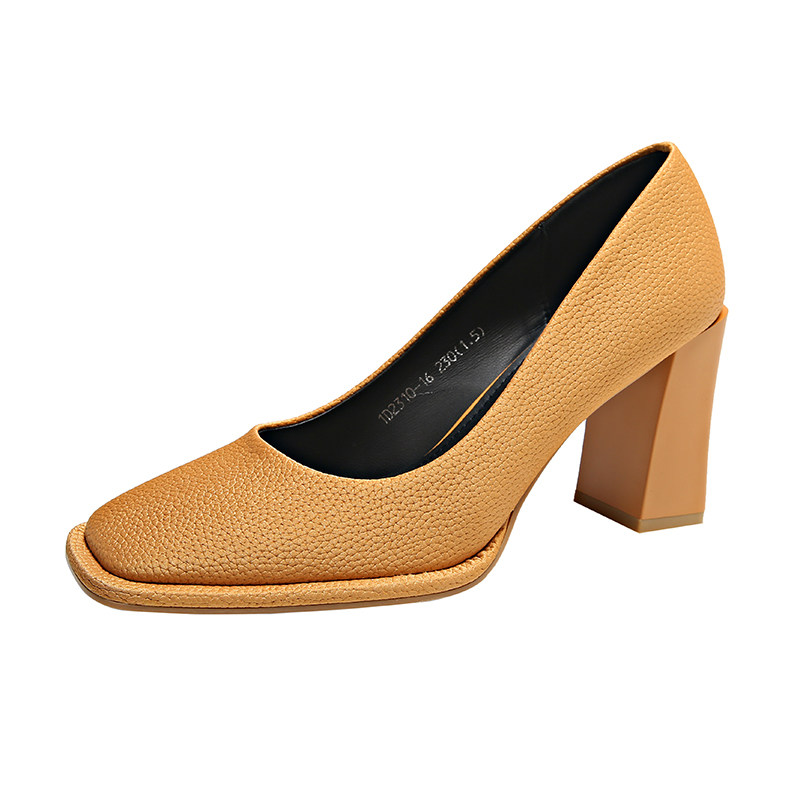Рыжие осенние модные универсальные туфли на высоком каблуке, коллекция 2023, французский стиль