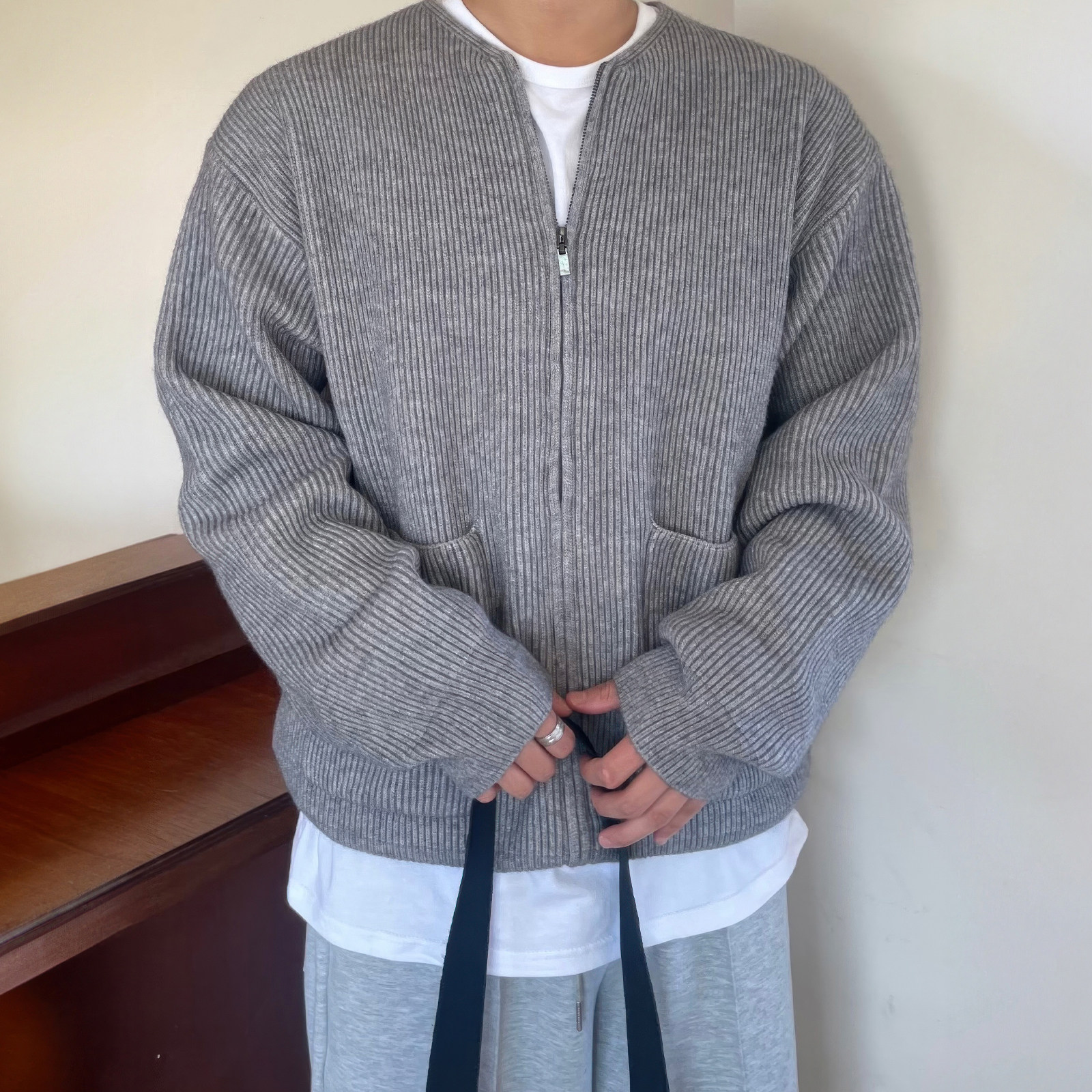 Лонгслив, кардиган, осенний свитер, модная куртка, в корейском стиле, свободный крой