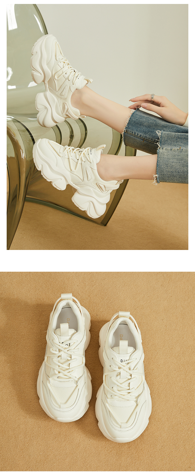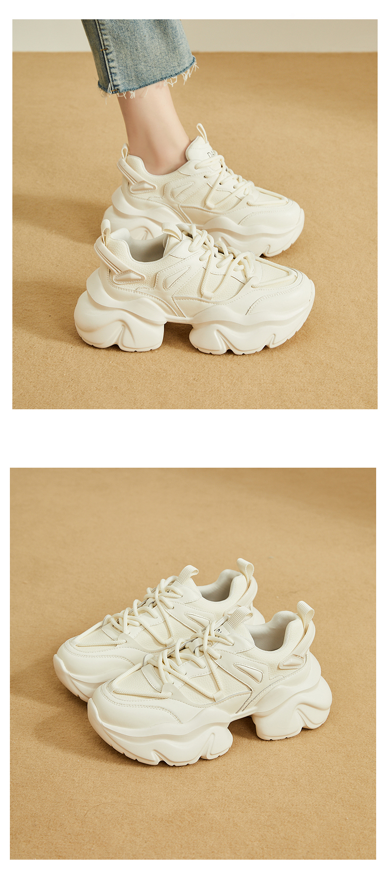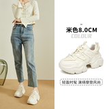 Высокая обувь на платформе, летние дышащие белые спортивные туфли на высоком каблуке