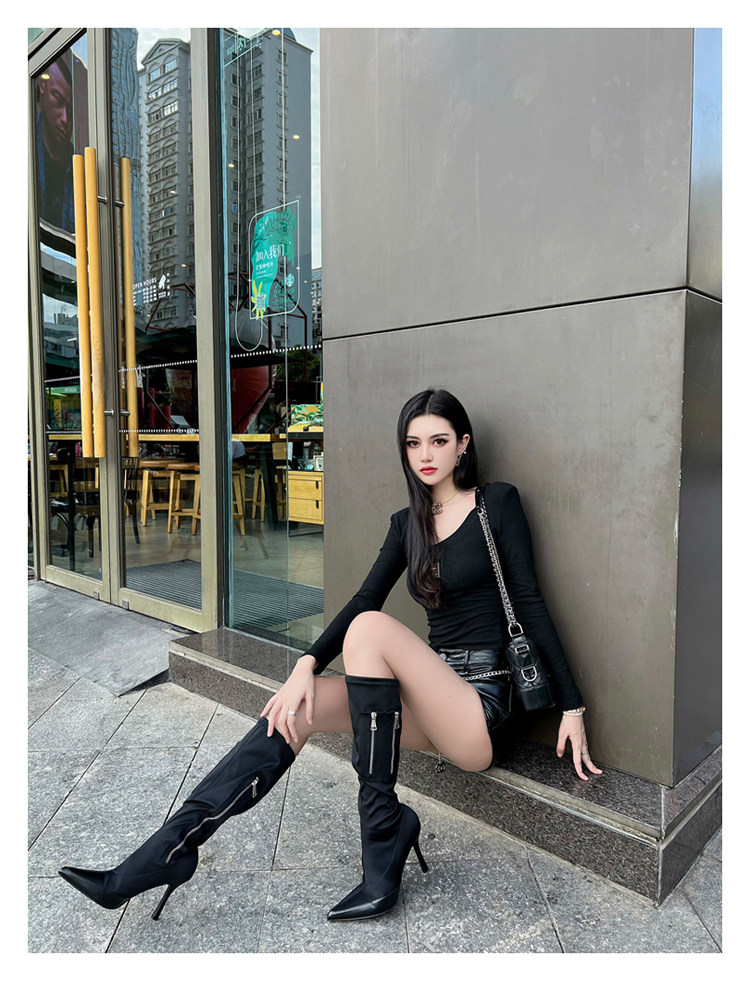 Высокие сапоги с молнией, европейский стиль, модель весна/осень 2024 года