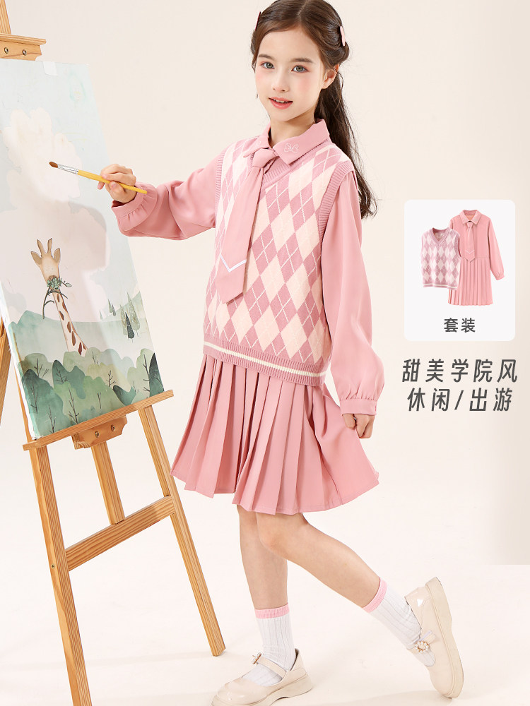 Платье, юбка, осенний комплект, жилет, 2023, в западном стиле, подходит для подростков