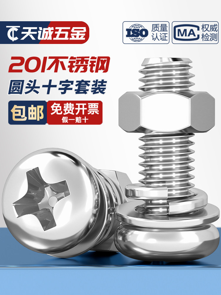 201 винт с круглой головкой из нержавеющей стали, гайка, комбинированный болт с потайной головкой, крестообразный винт M3M4M5M6M8M10Mm