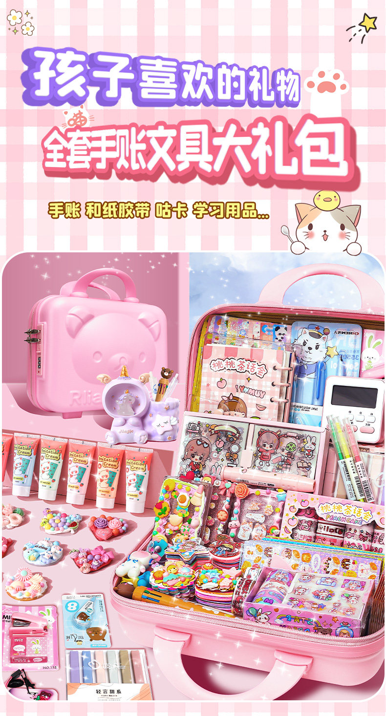 Комплект, подарочная коробка, милый карманный блокнот, детские канцтовары, ноутбук, книга, наклейка, набор для школьников и студентов, небольшая сумка, подарок на день рождения, полный комплект