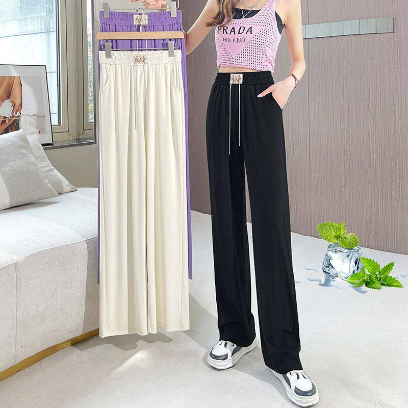 Осенние шелковые абрикосовые штаны, стиль Лолита, свободный прямой крой, высокая талия