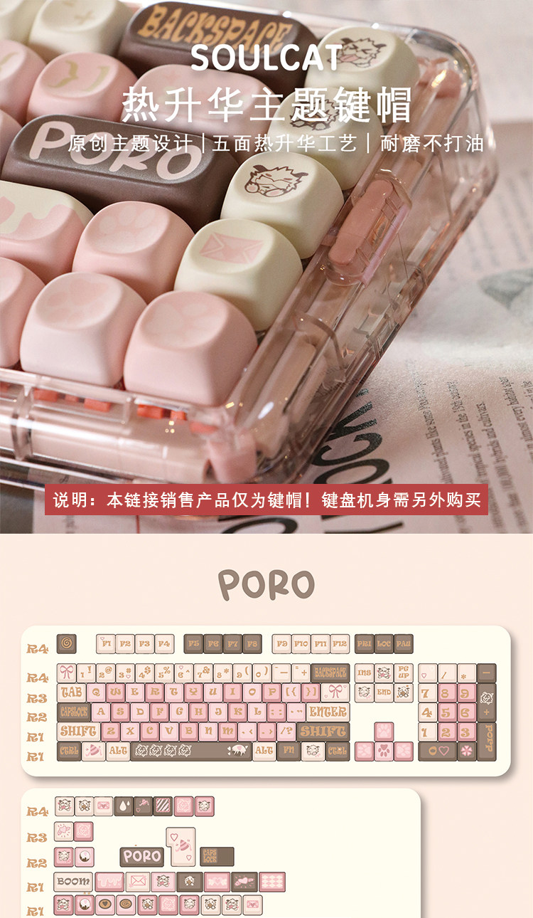 Soulcat Poro Keycap MOA High PBT Материал Механическая клавиатура
