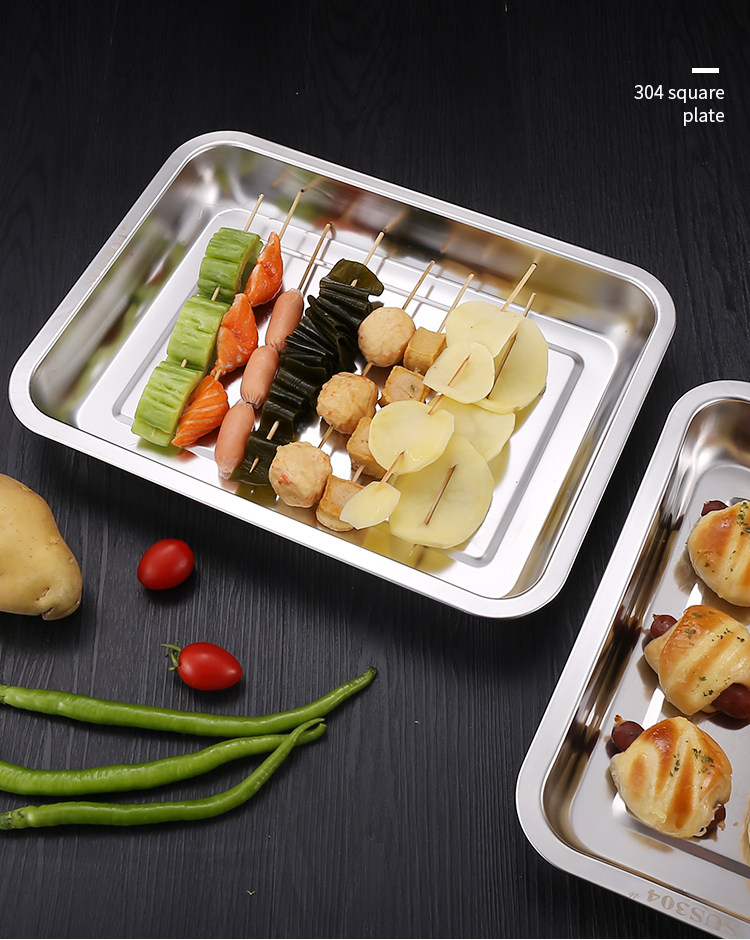 304 Квадратная лотка из нержавеющей стали Прямоугольная тарелка для барбекю для гриля для барбекю рыбная тарелка.