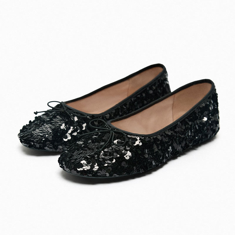 Блестки для ногтей, балетки с низким вырезом с бантиком, осенние, новая коллекция, в стиле Шанель