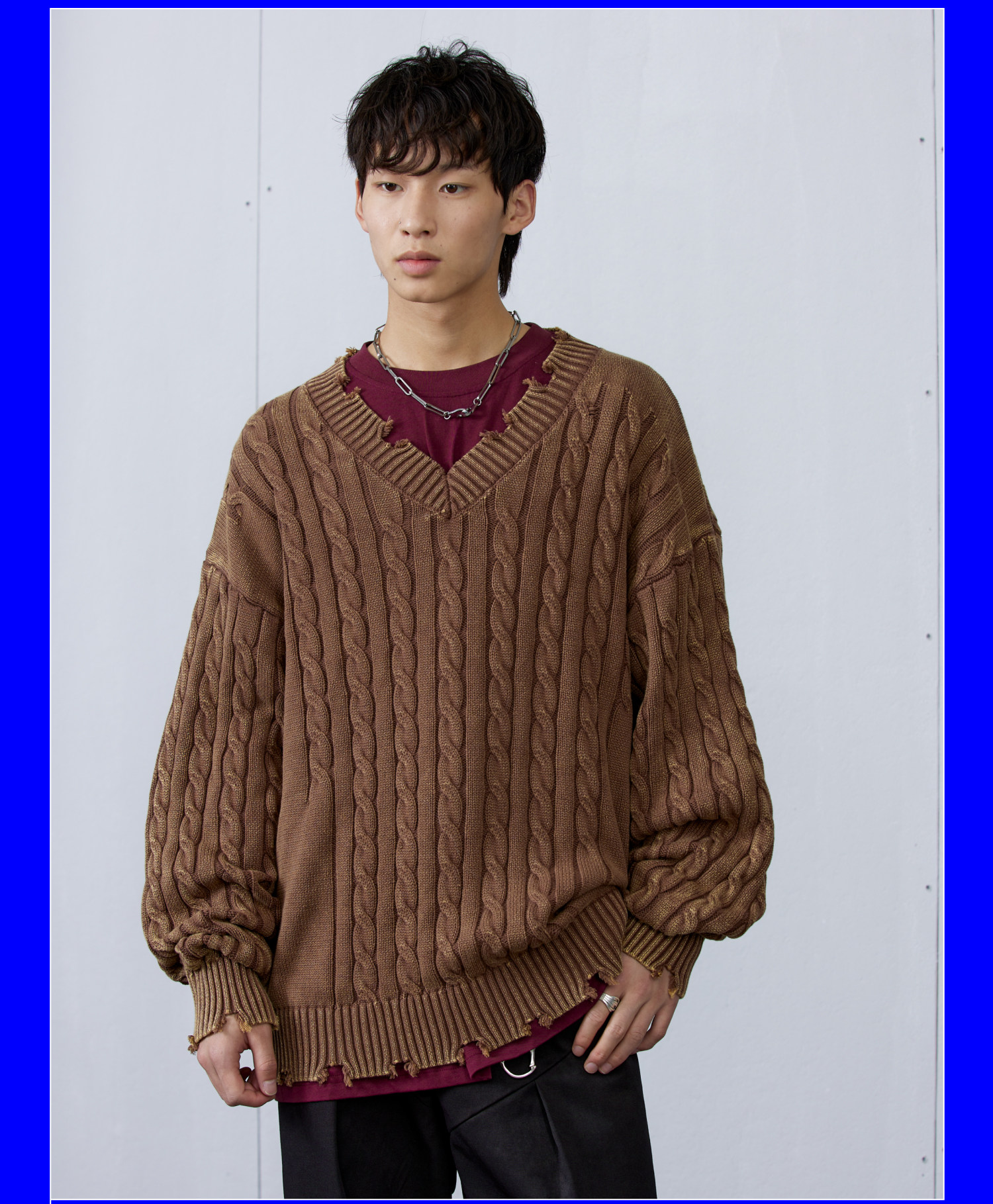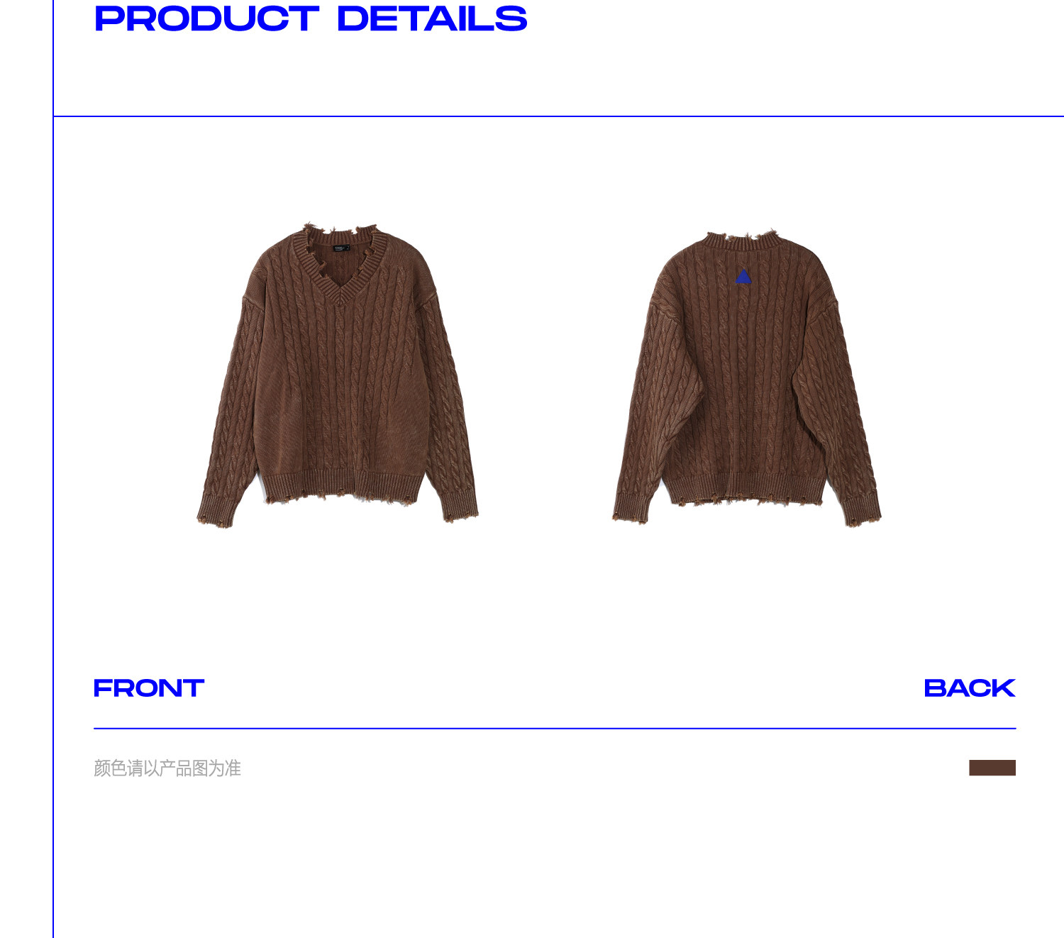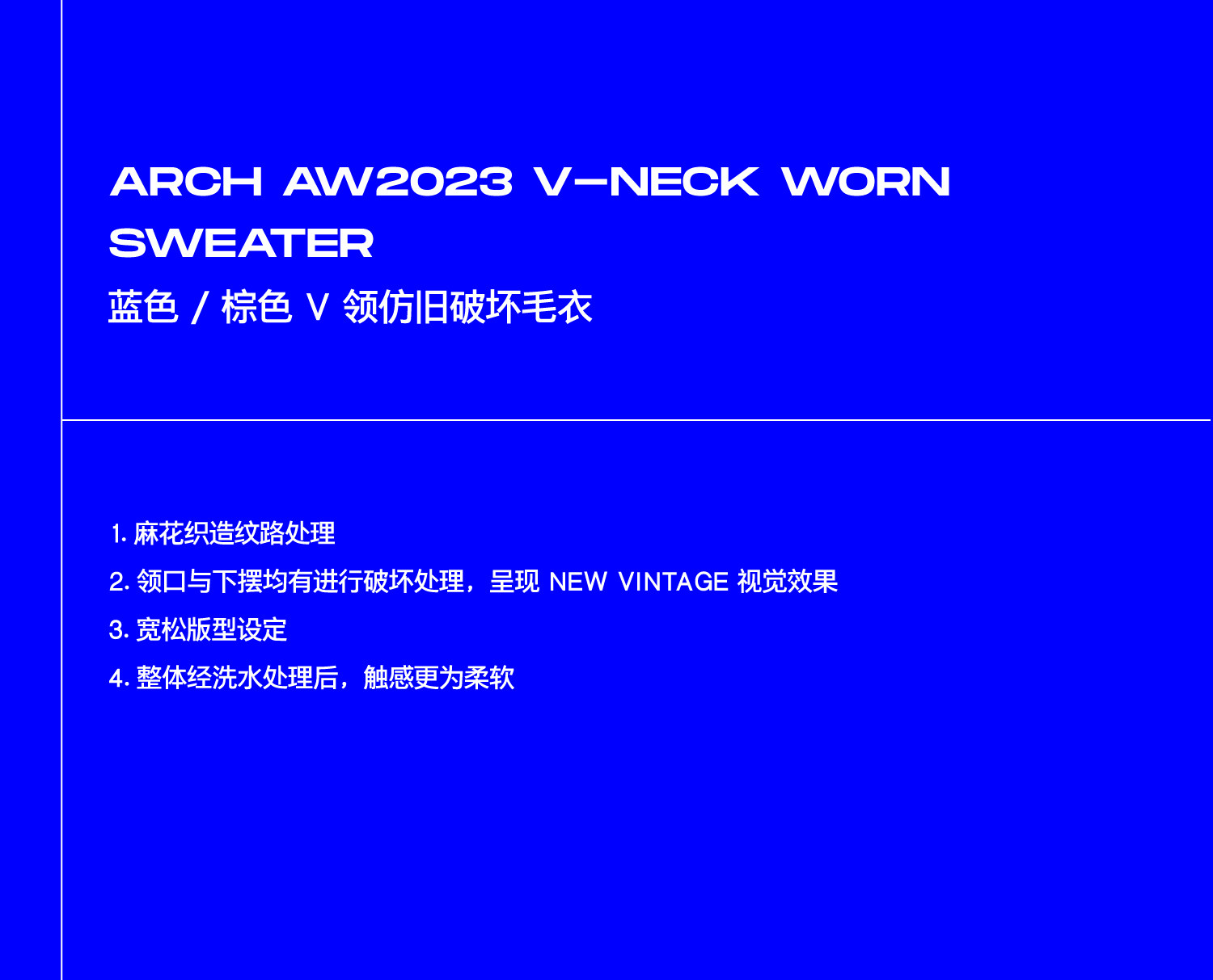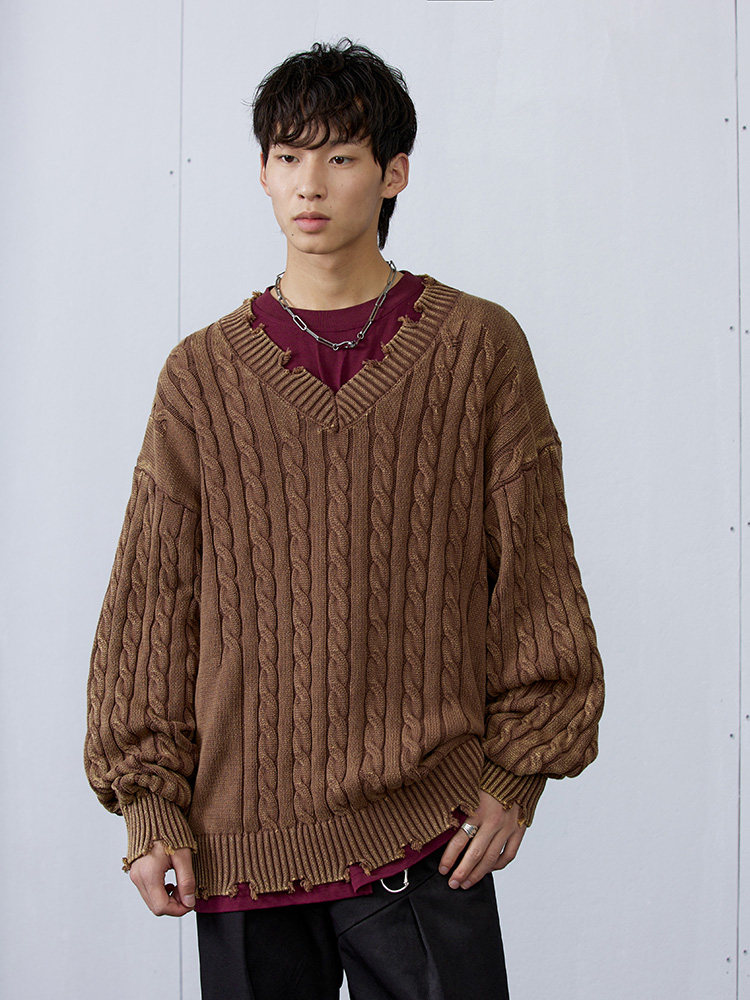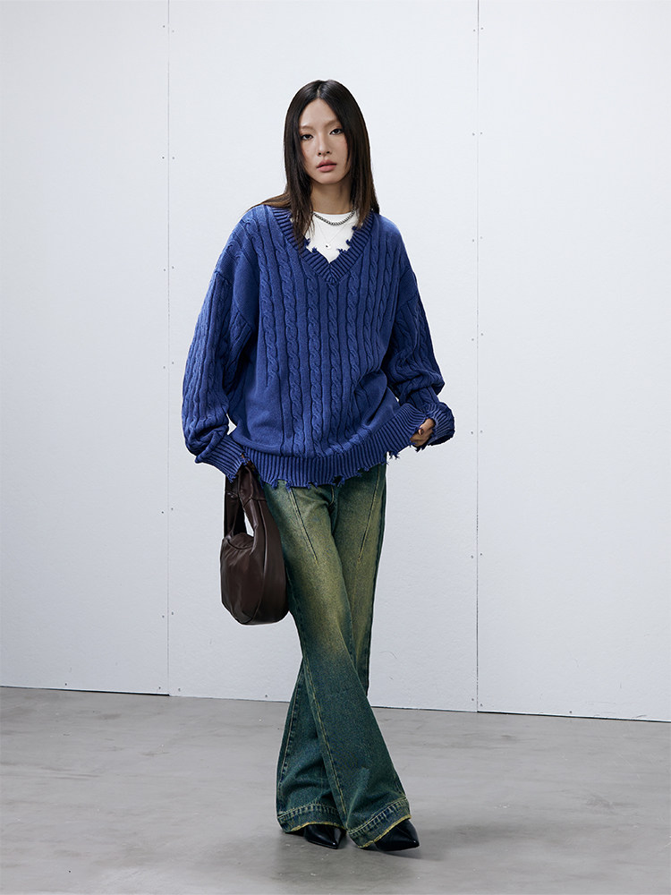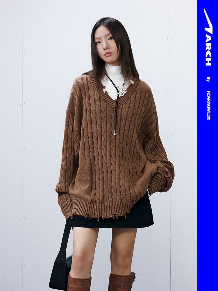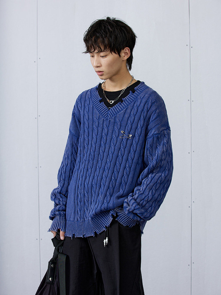 Синий/коричневый потертый свитер с V-образным вырезом ARCH BY ROARINGWILD