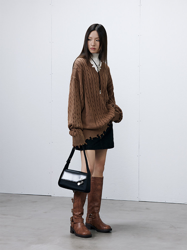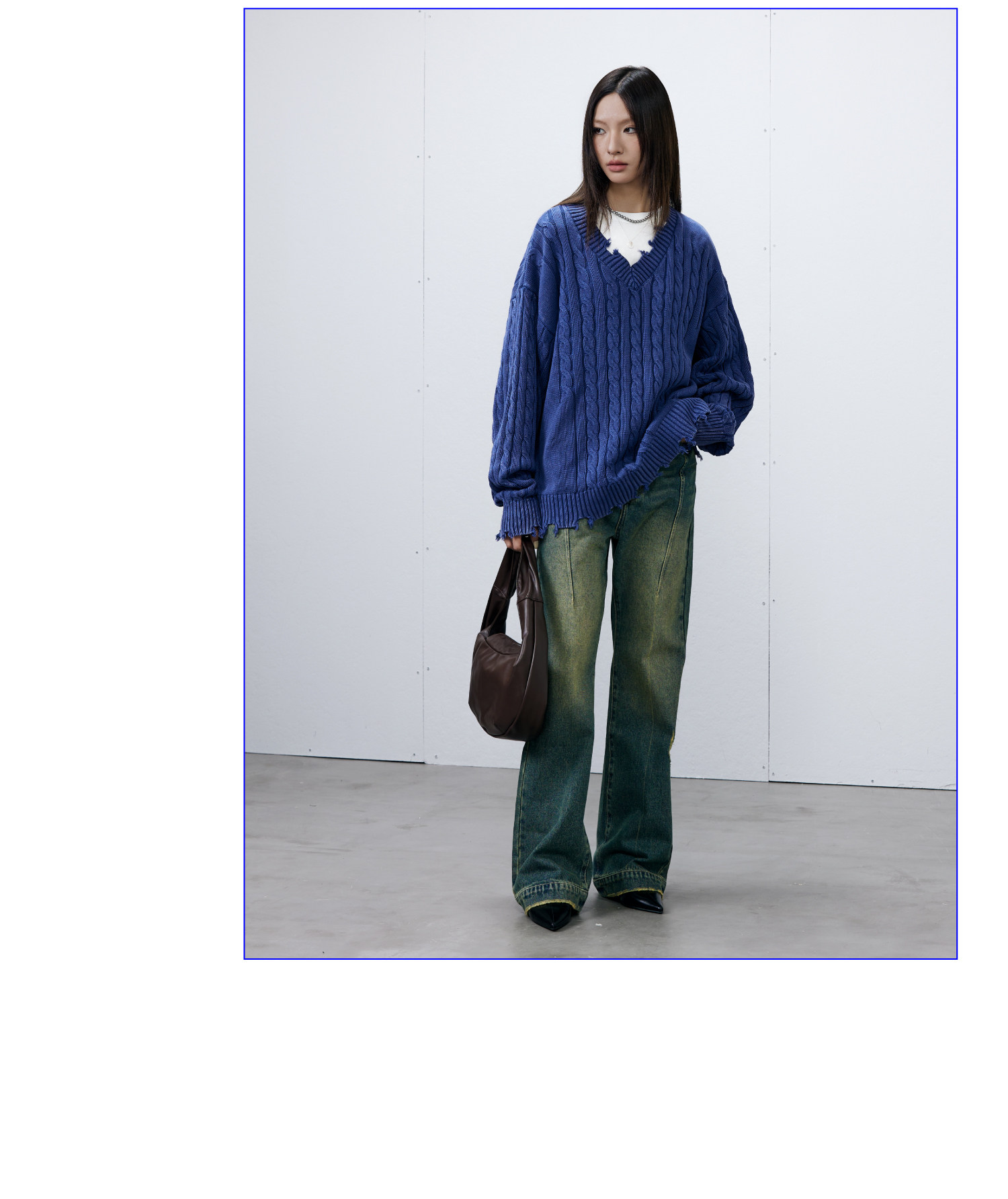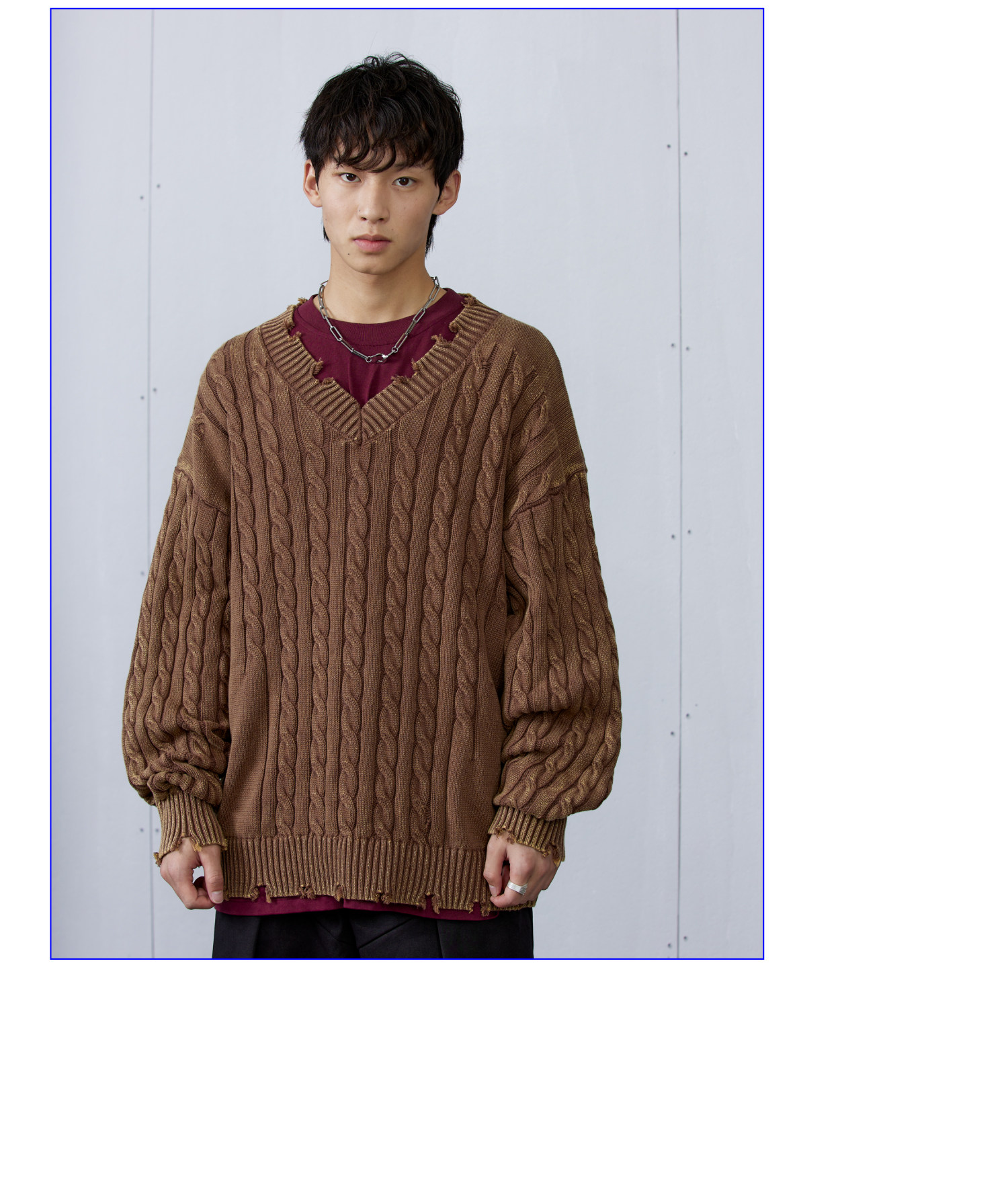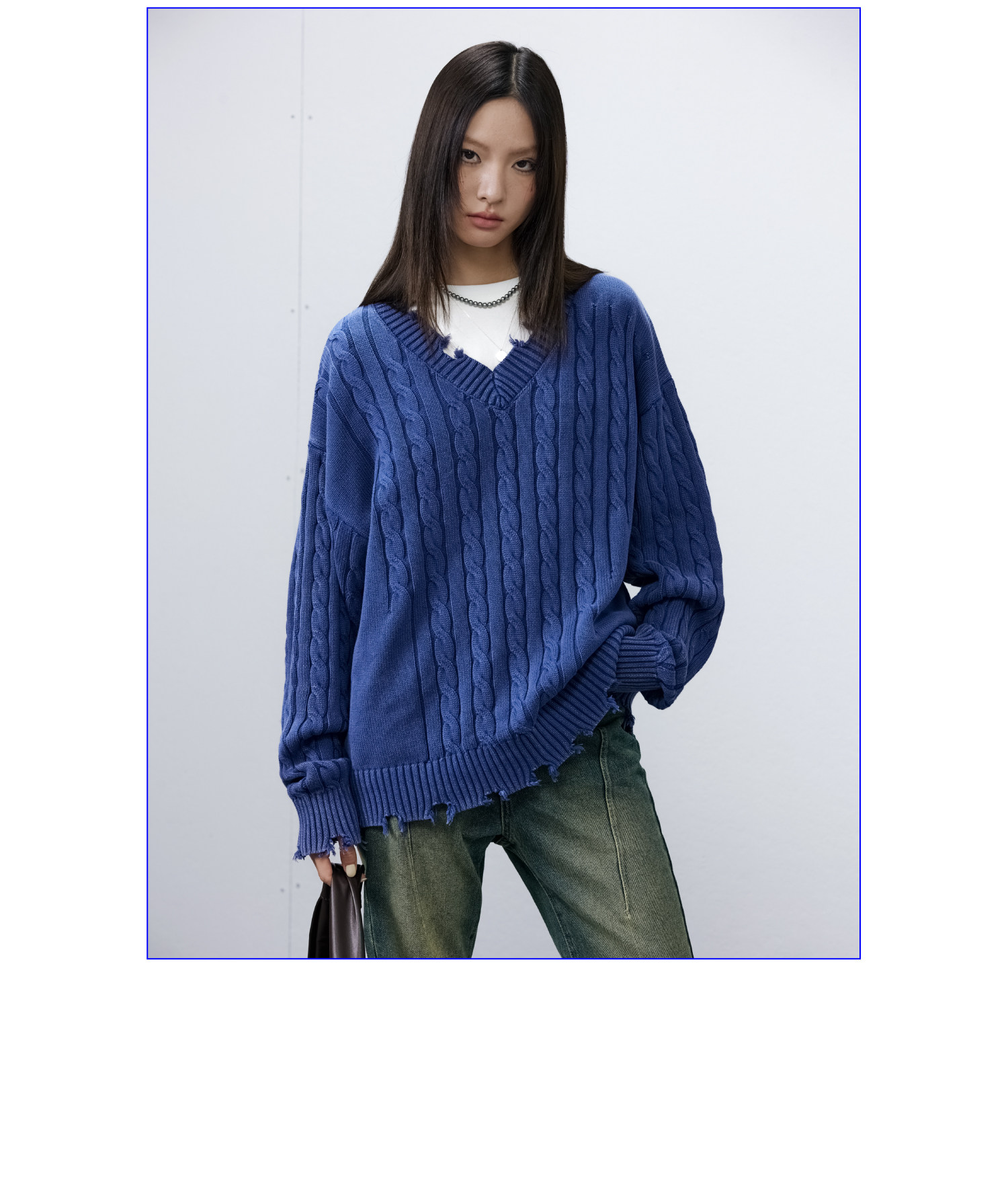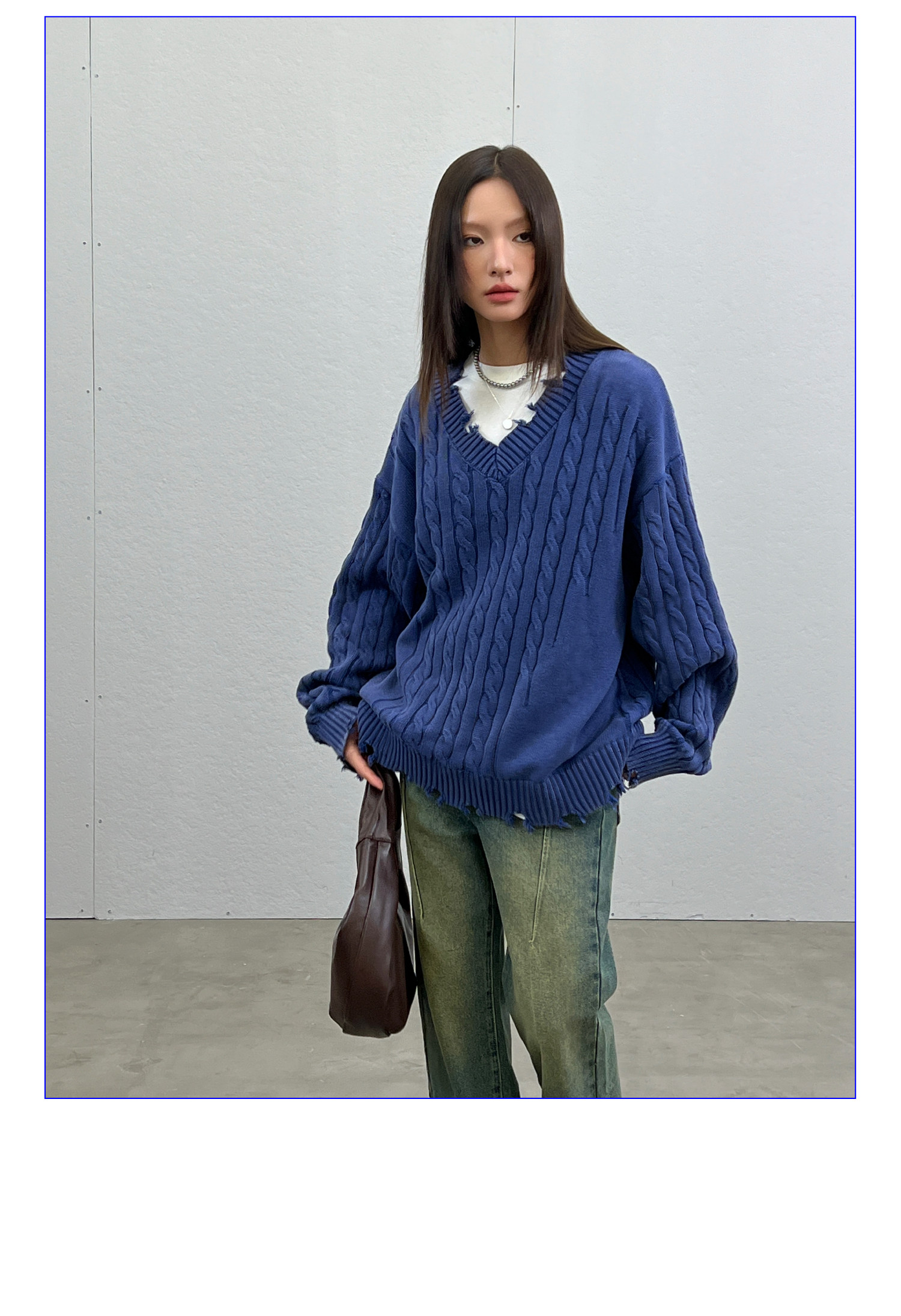 Синий/коричневый потертый свитер с V-образным вырезом ARCH BY ROARINGWILD