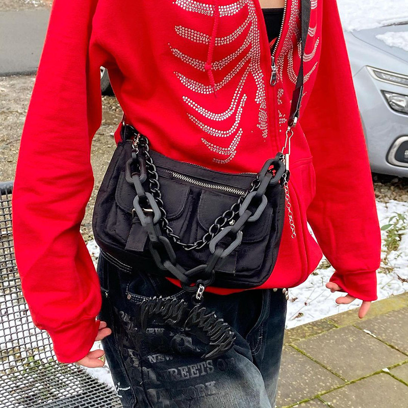 СТИНГИНГИ СПИДОВЫЙ Скелет Печать Черный Y2K Goth Long-Sl