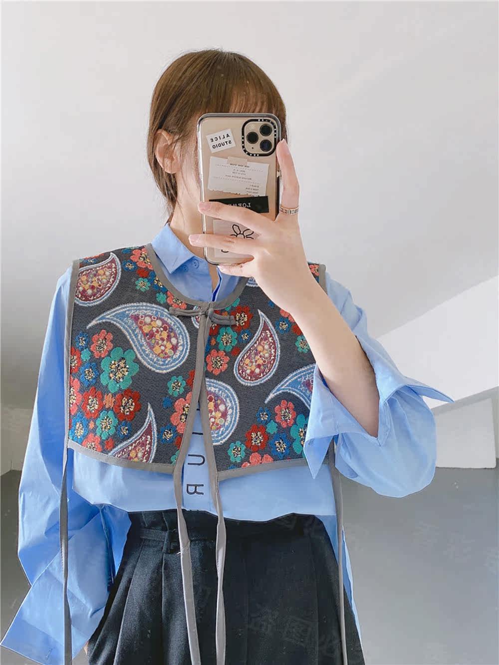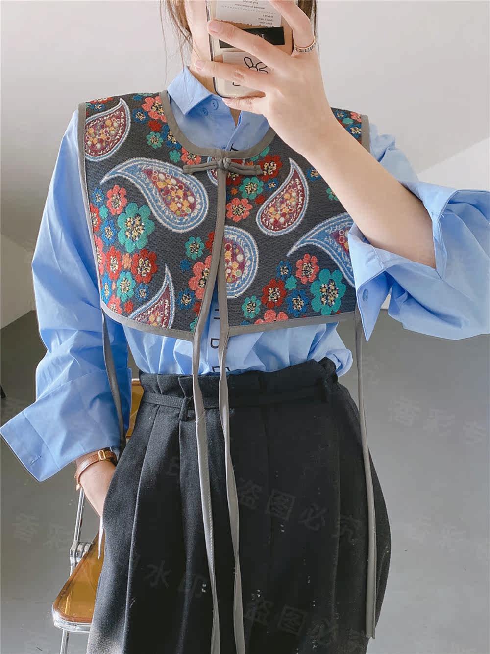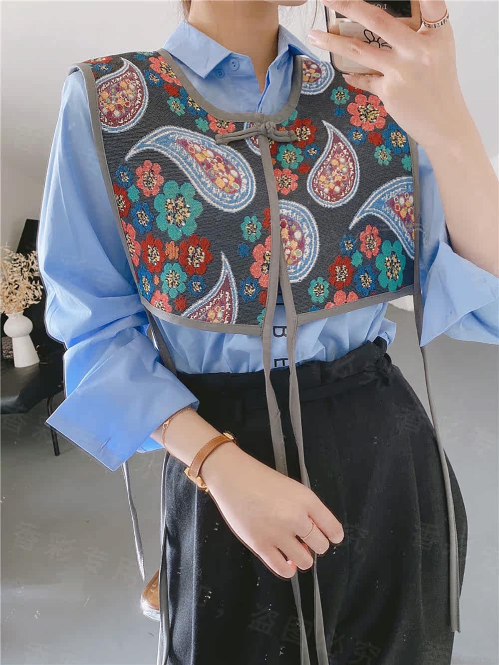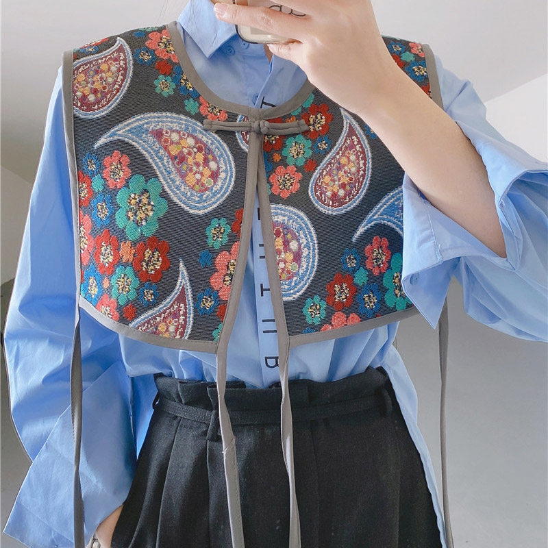 Этническая ретро накидка, летний жилет, рубашка, юбка, этнический стиль, с вышивкой, с защитой шеи