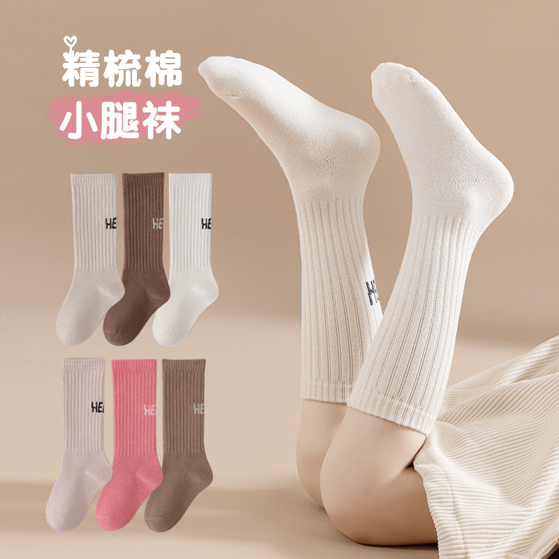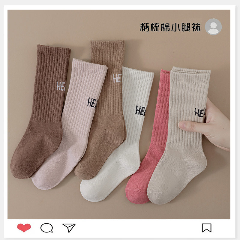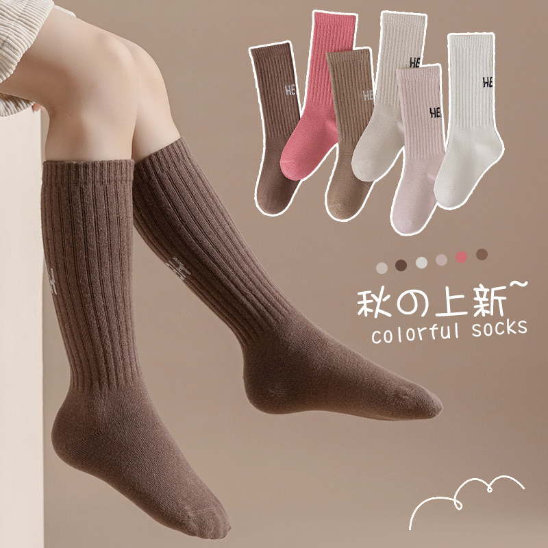 Осенние хлопковые гольфы, детские носки, демисезонные высокие сапоги, средней длины