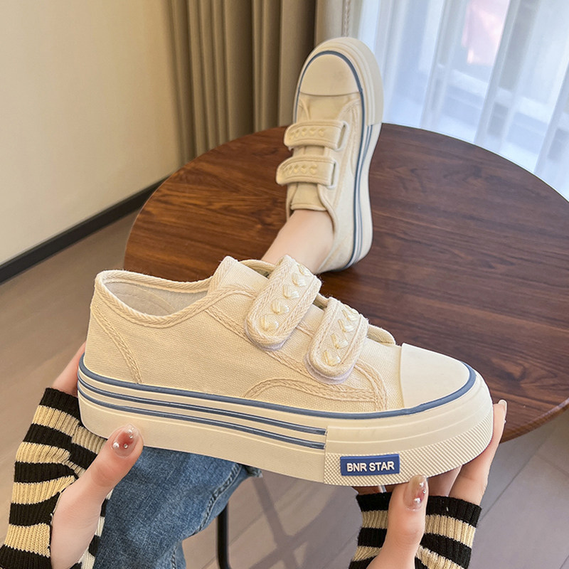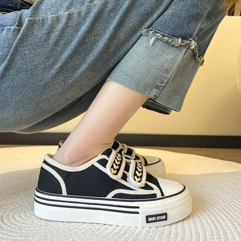 Тканевая весенняя демисезонная белая обувь на липучке на платформе, кроссовки, в стиле Шанель, тренд сезона