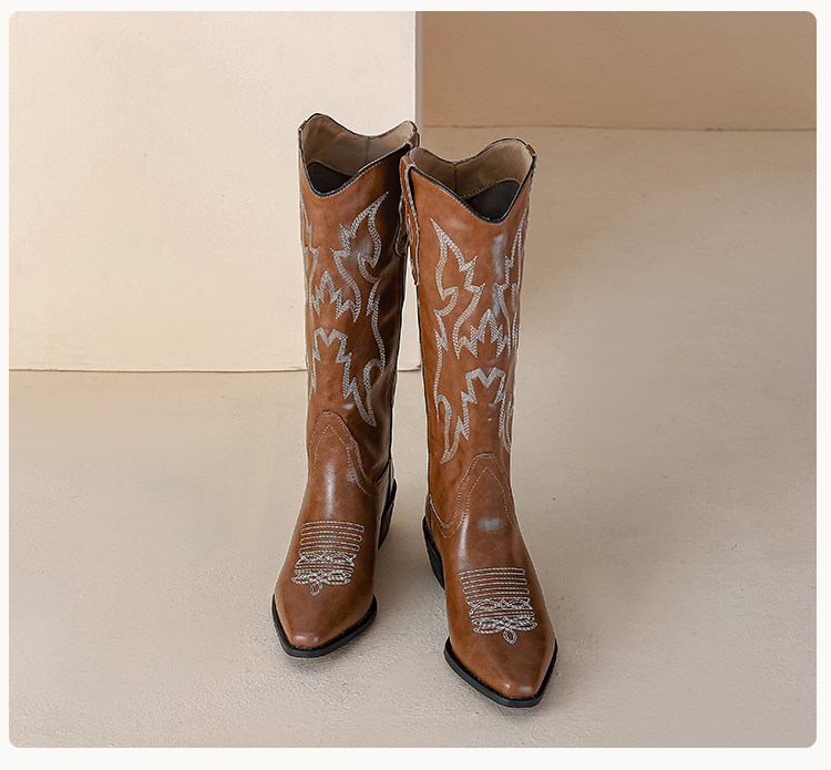 Вышивка длинные ботинки женские ноги толстые мм Big Barbarian Knight Boots Retro Western Denim Boots Большой размер женских ботинок 41 43