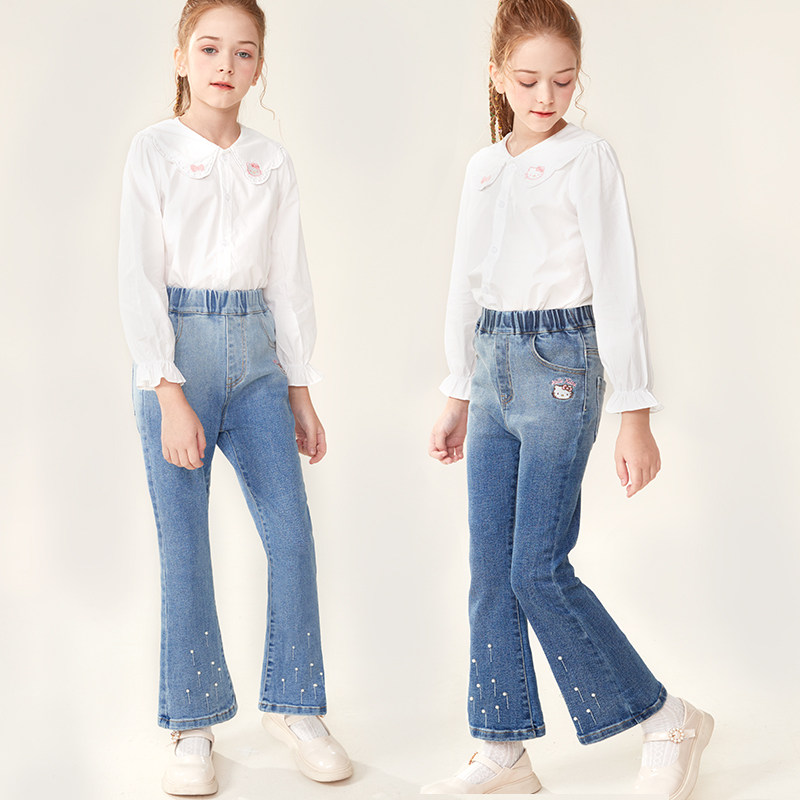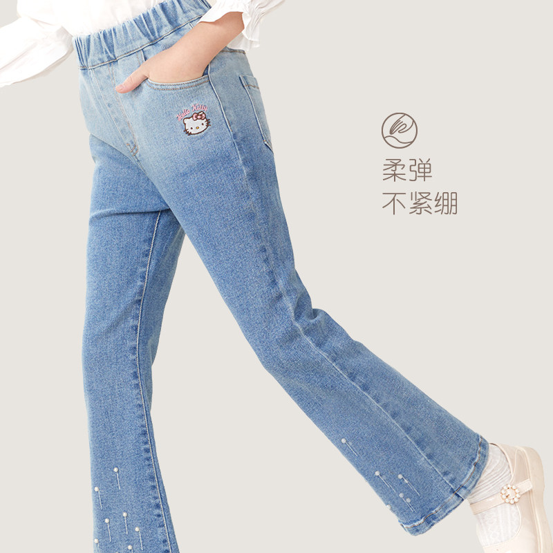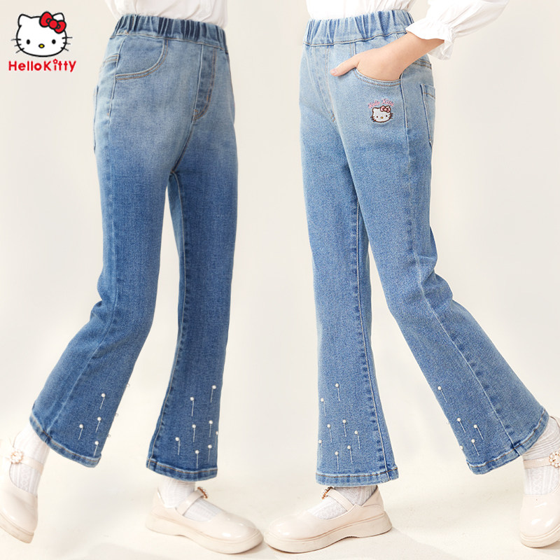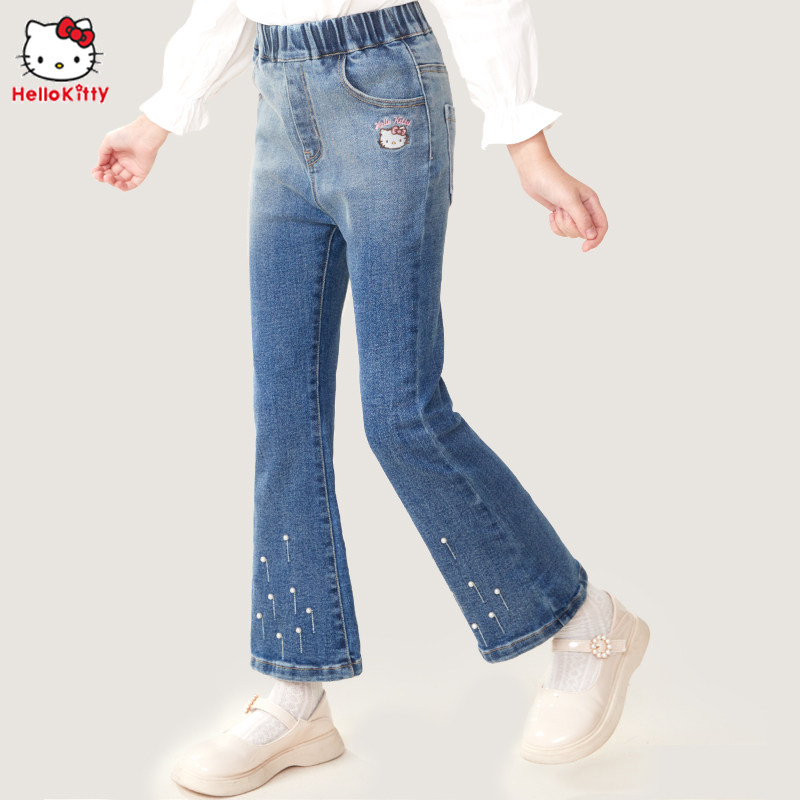Hello kitty, детские осенние джинсы, штаны, штаны-клёш, новая коллекция, подходят для подростков, в западном стиле, детская одежда