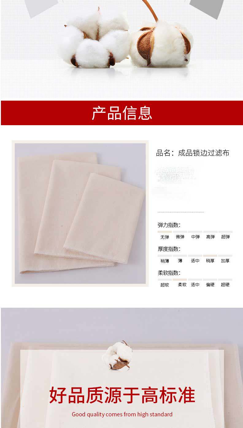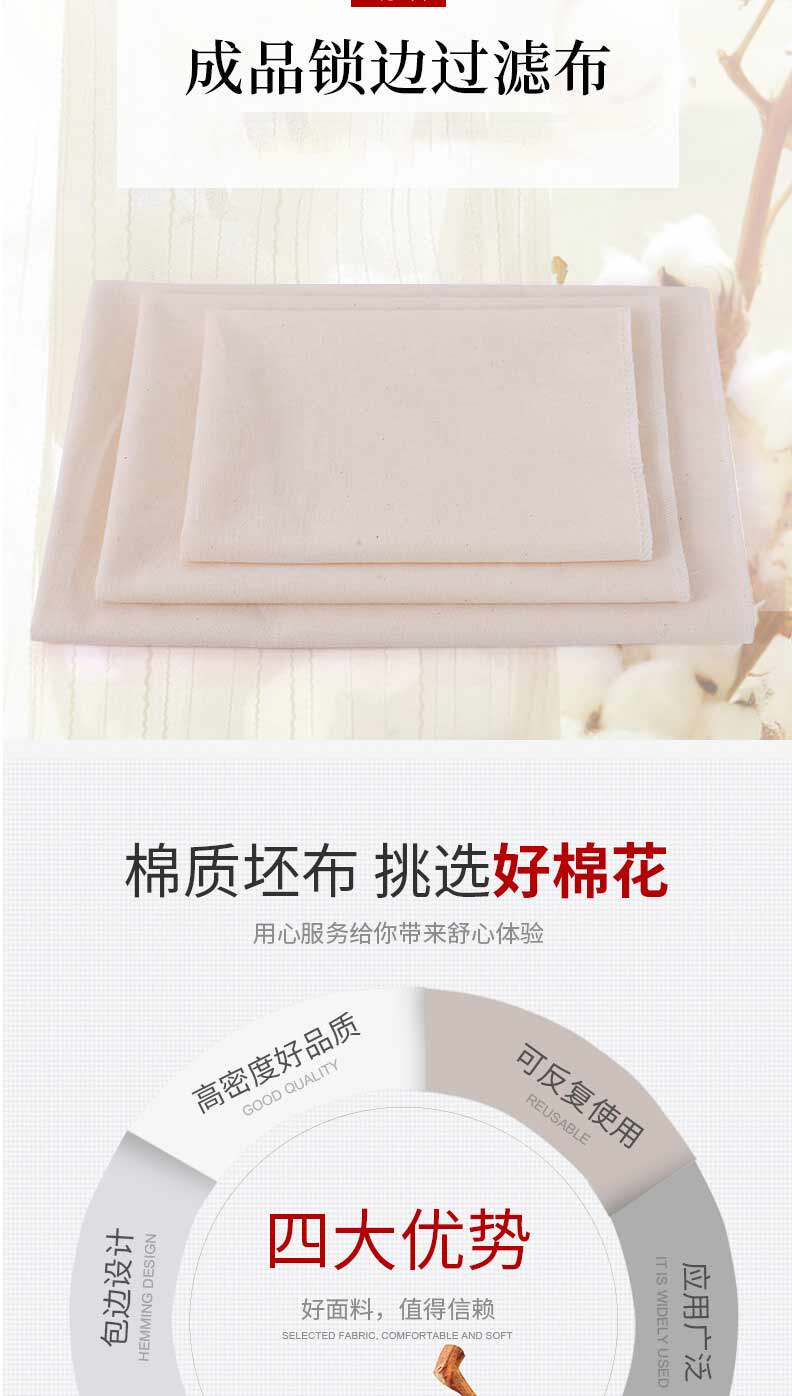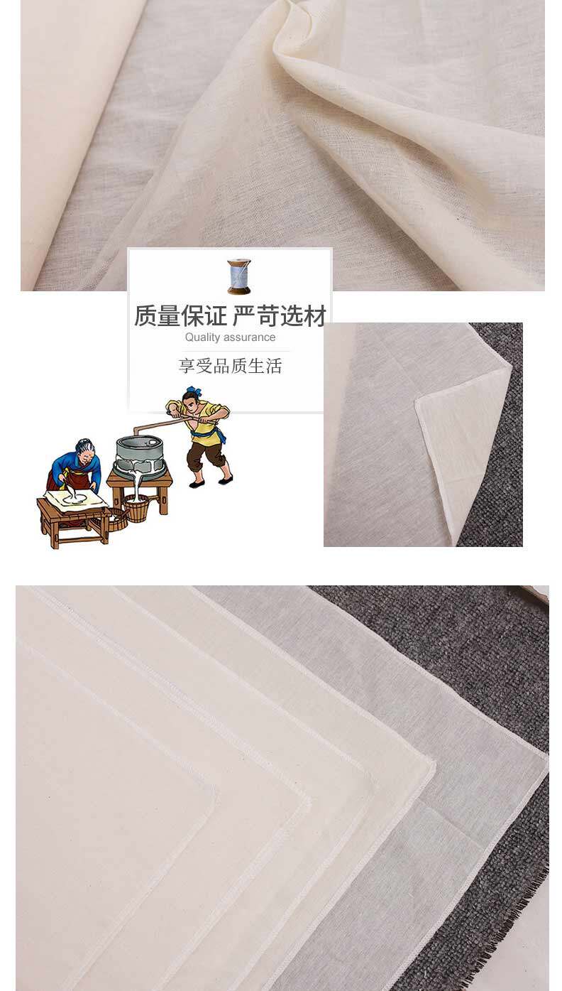 Фильтр с чистым хлопчатобумажной пакетом Tofu Filter ткань из паря с рисовой тканью грубая ткань тонкая ткань ткань для съедания белого песочного изделия из ручной работы