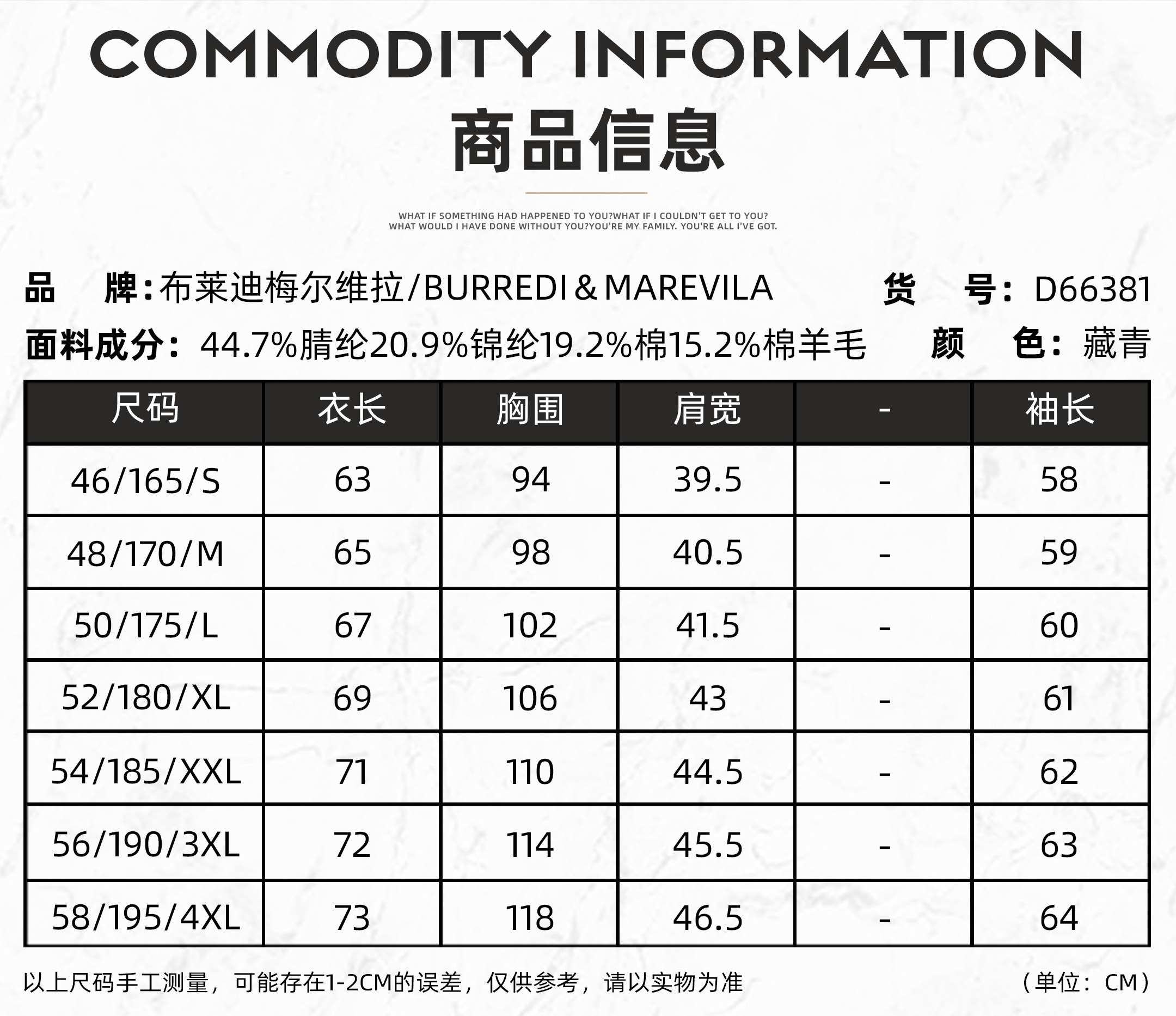 | Размер: | 46/165/S, 48/170/M, 50/175/L, 52/180/XL, 54/185/XXL, 56/190/XXXL, 58/195/XXXXL, Код точного размера, пожалуйста, проконсультируйтесь с обслуживанием клиентов |