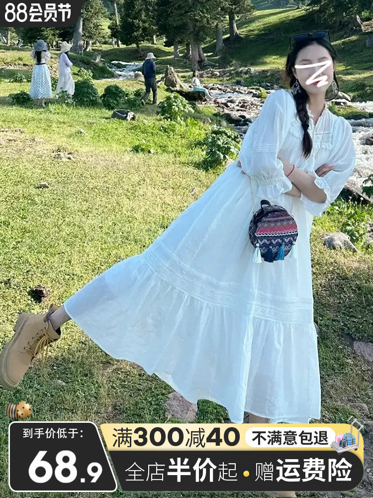 Цвет: [Mi -white] [Варлинговое чувство/красивая юбка в этом году/Уникальная юбка Супер красивая/суперточная/высокая изысканная/пляжная юбка Санья/Стиль сестры Дреста/Осень 2023 Новая женская одежда]