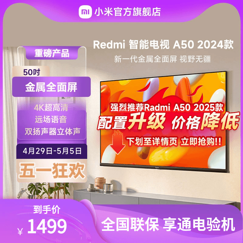 Xiaomi TV 4K Ultra HD 50-дюймовый металлический полноэкранный