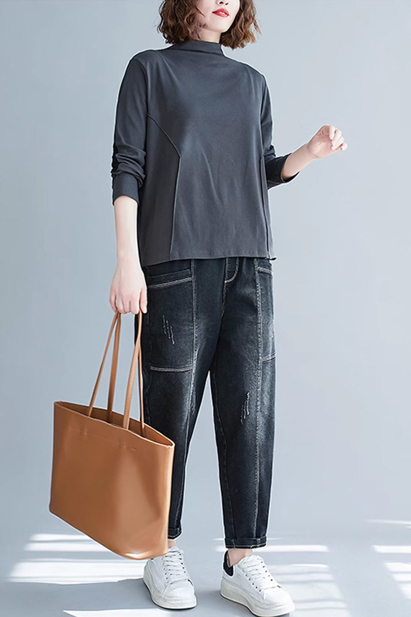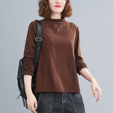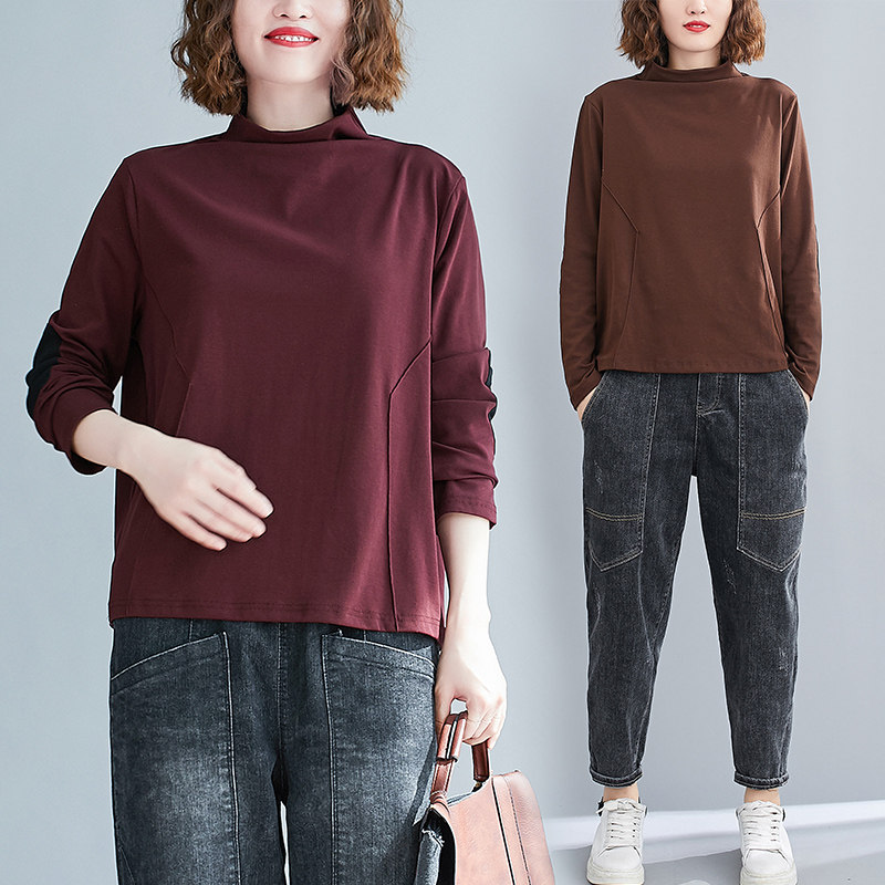 Демисезонный базовый пластырь, приятный телу лонгслив, подходит для полных девушек, оверсайз, высокий воротник