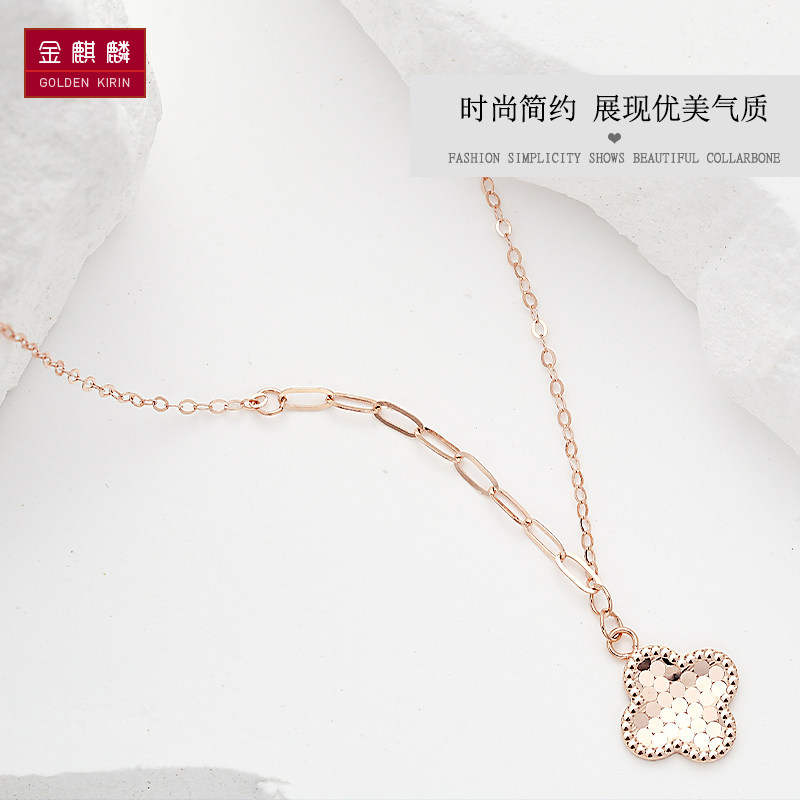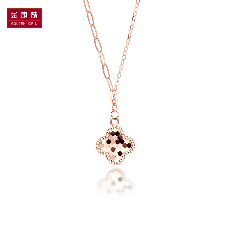 金奇麟 Золотое блестящее ожерелье, Россия, 14 карат, розовое золото, четырехлистный клевер