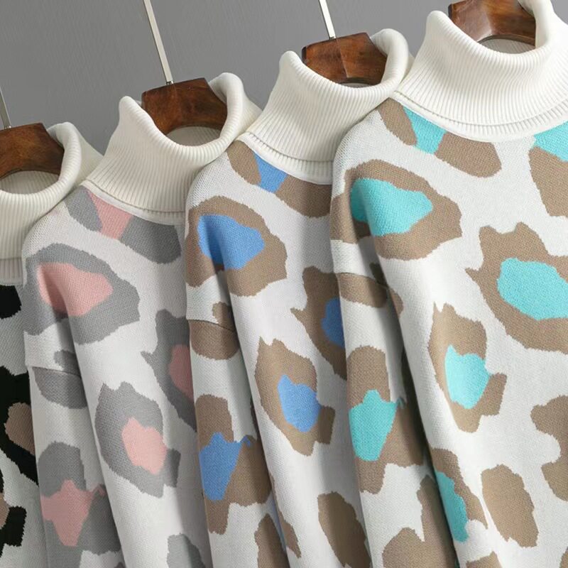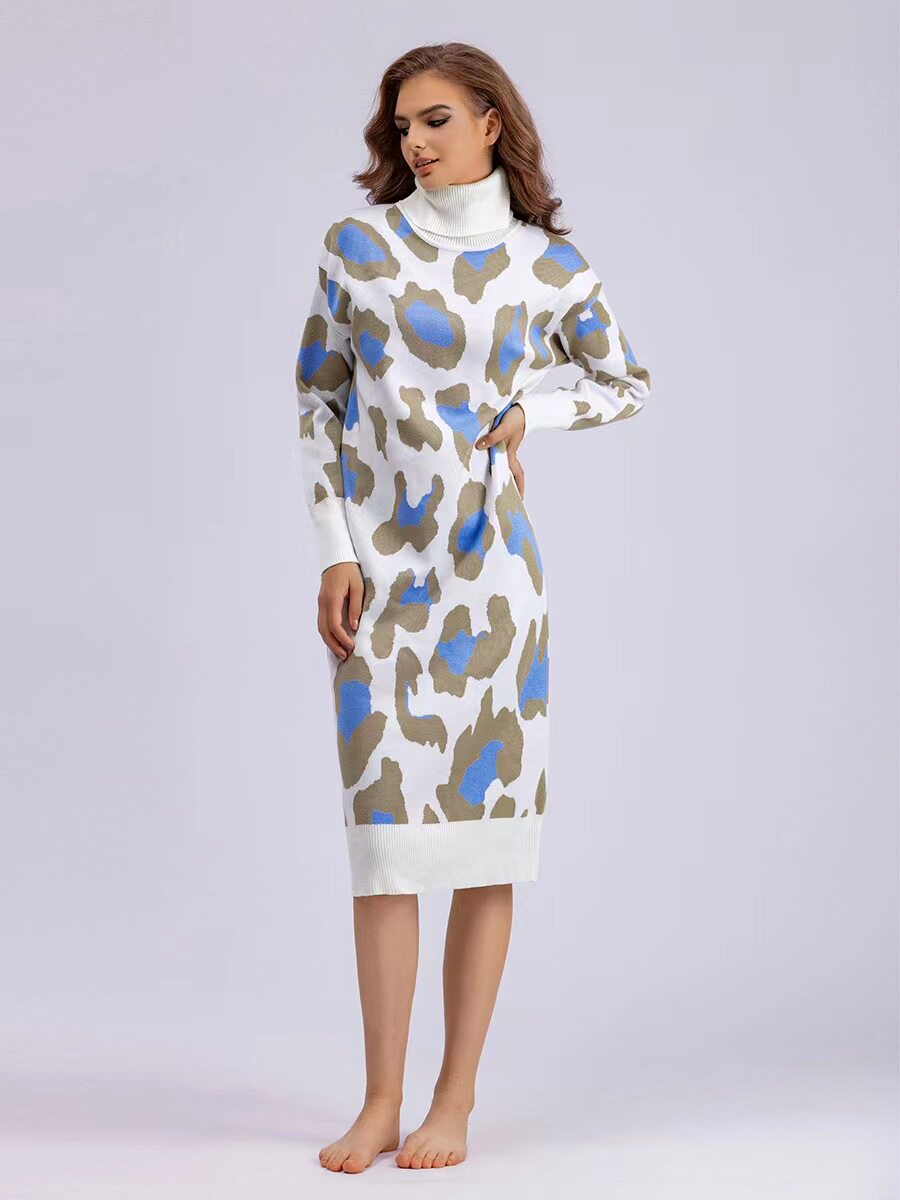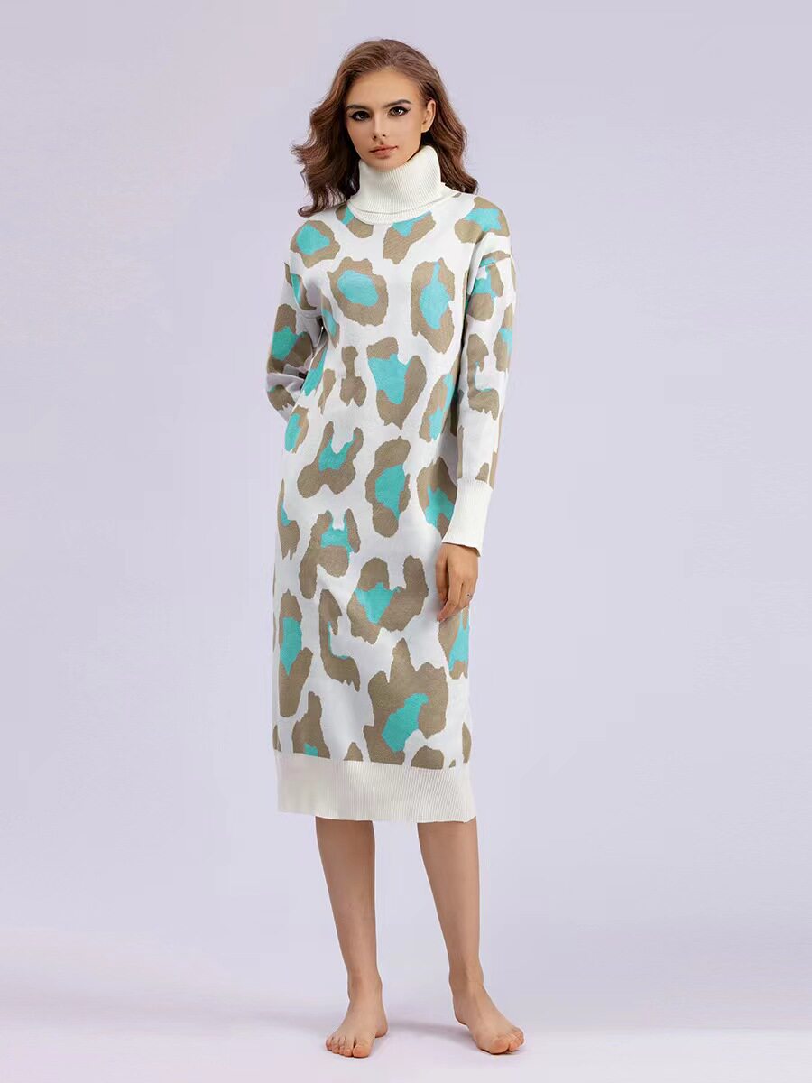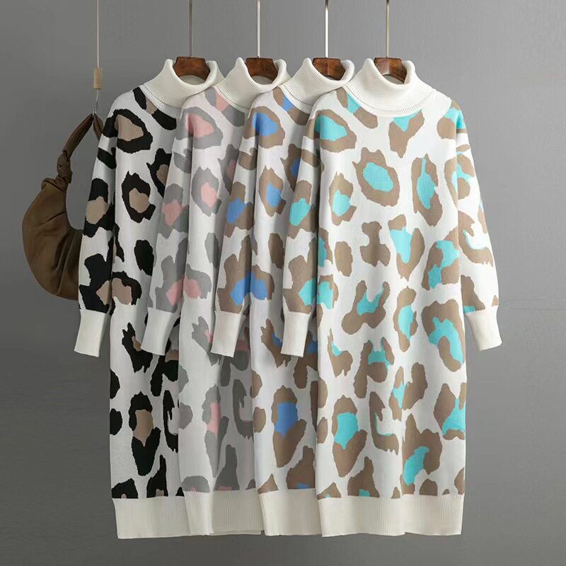 Европейское и американское стиль новое высокообогащенное вязаное платье леопарда