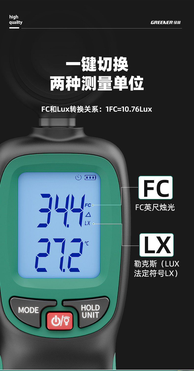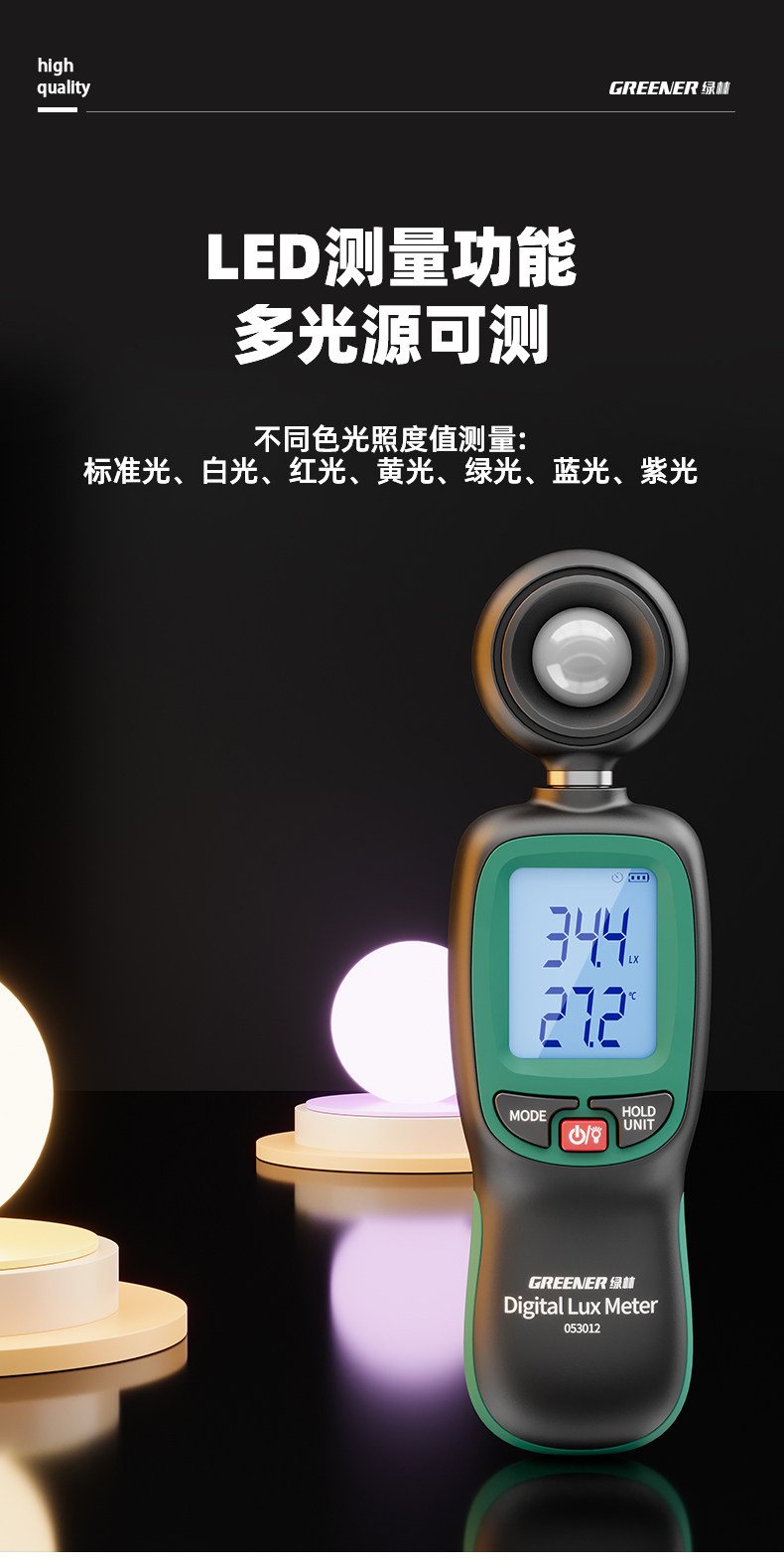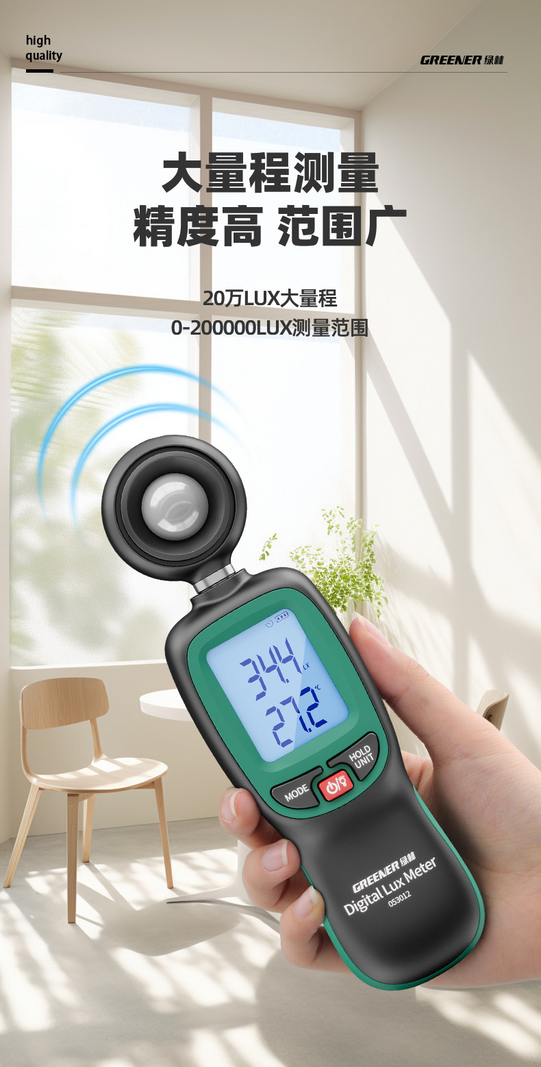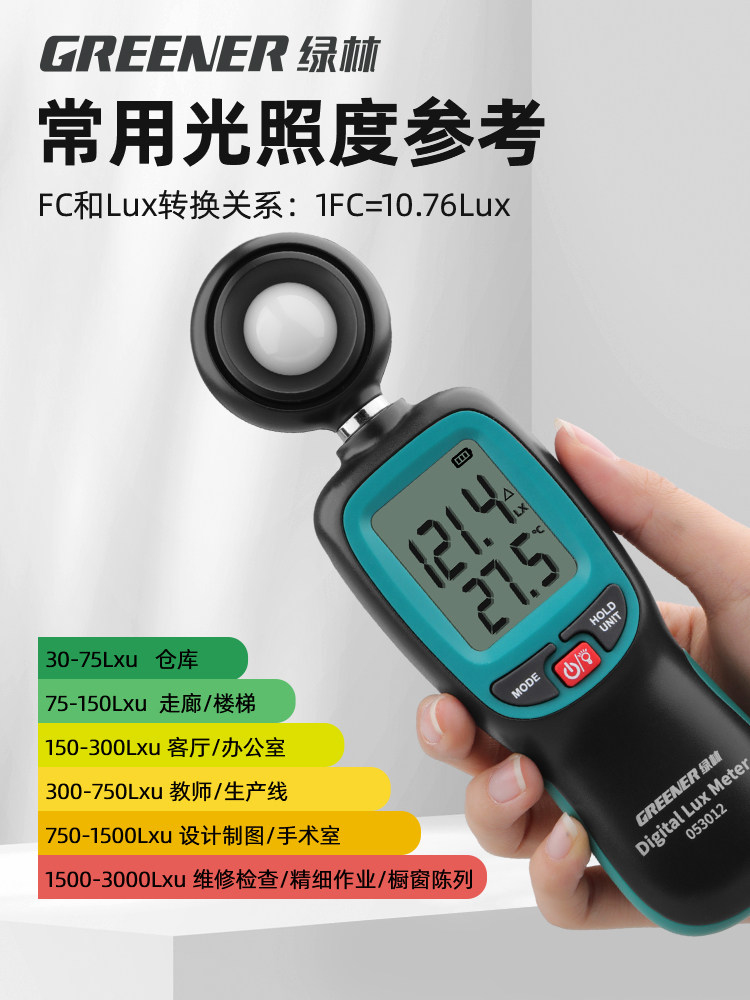 Зеленый лес с высоким уровнем освещающего измерителя испытательный прибор.