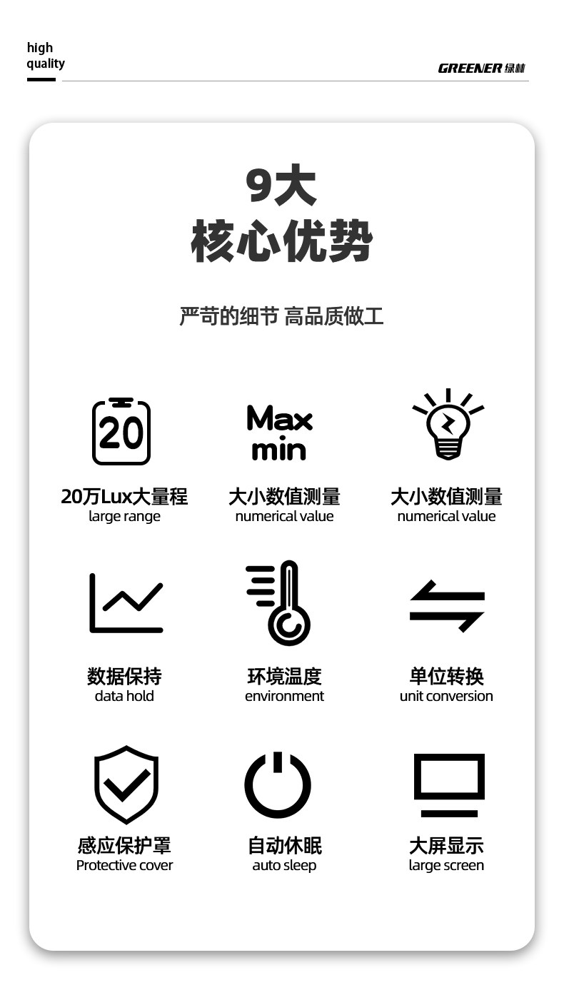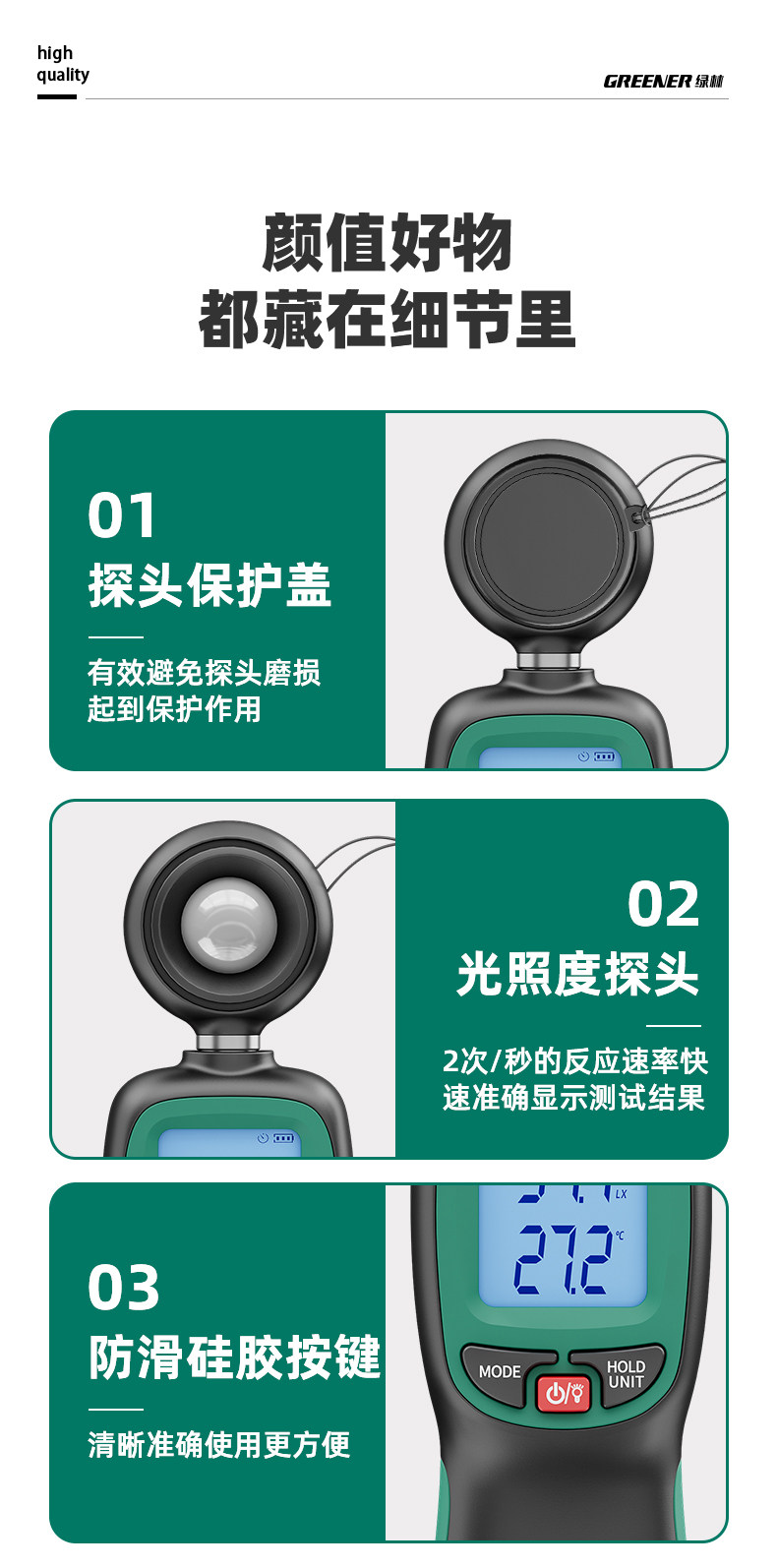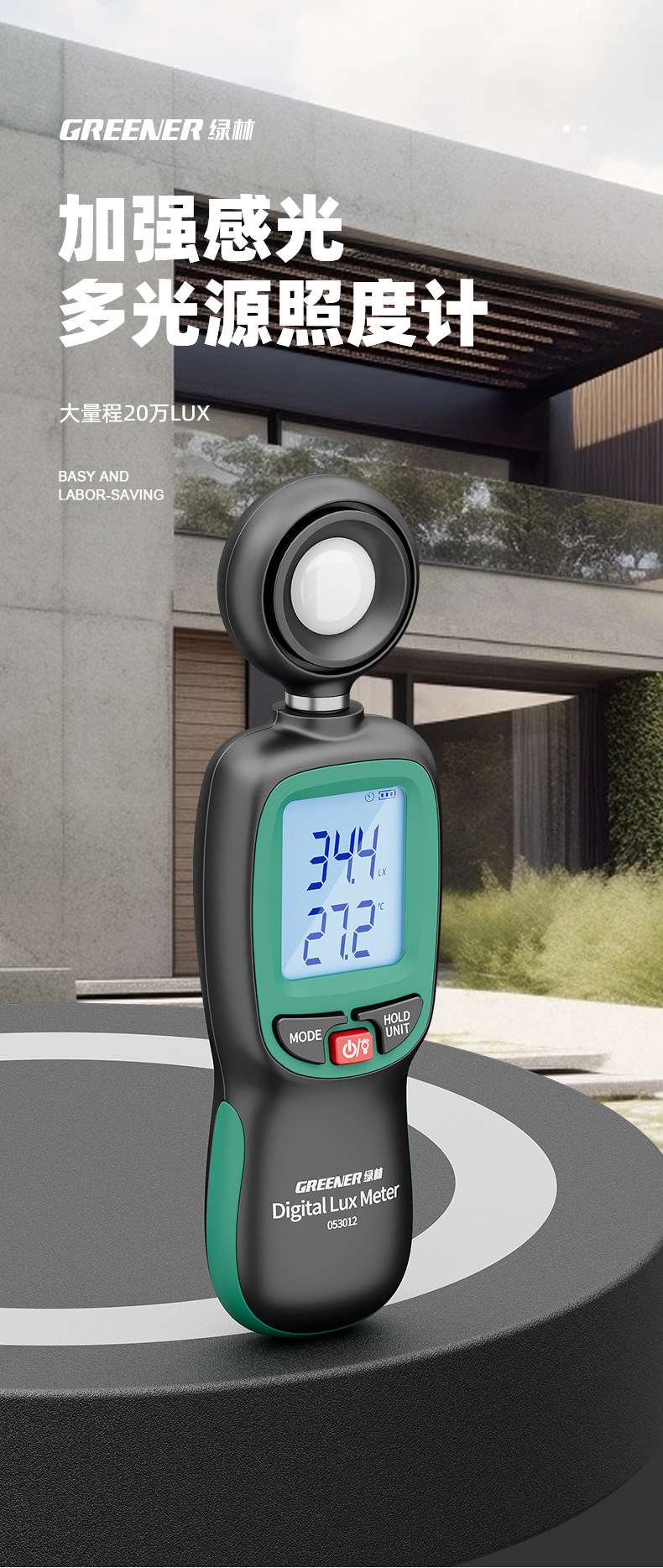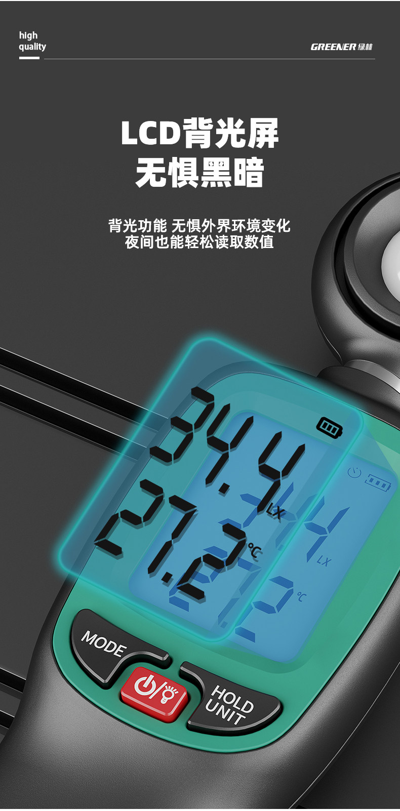 Зеленый лес с высоким уровнем освещающего измерителя испытательный прибор.