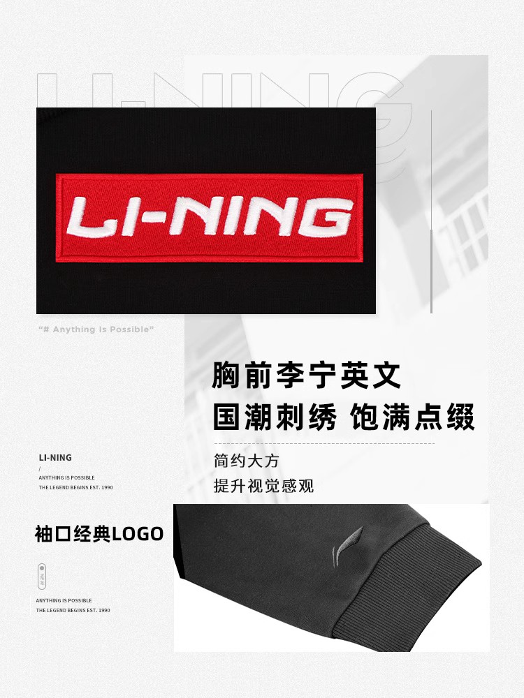 Li Ning, мужская демисезонная толстовка, комплект, спортивный лонгслив с капюшоном для отдыха для влюбленных