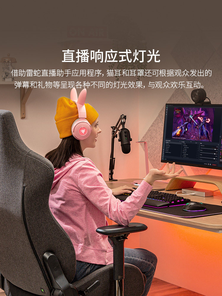 Razer Kraken Cute Cat Version V2 Розовый кварц USB-гарнитура Проводная игровая гарнитура RGB RGB Подарок на праздник
