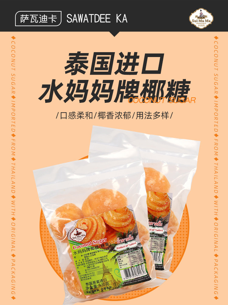 Тайская оригинальная импортная вода мать кокосовое сахар 500 г юго -восточной азиатской десертные ингредиенты приправляя кокосовые конфеты в стиле тайского стиля