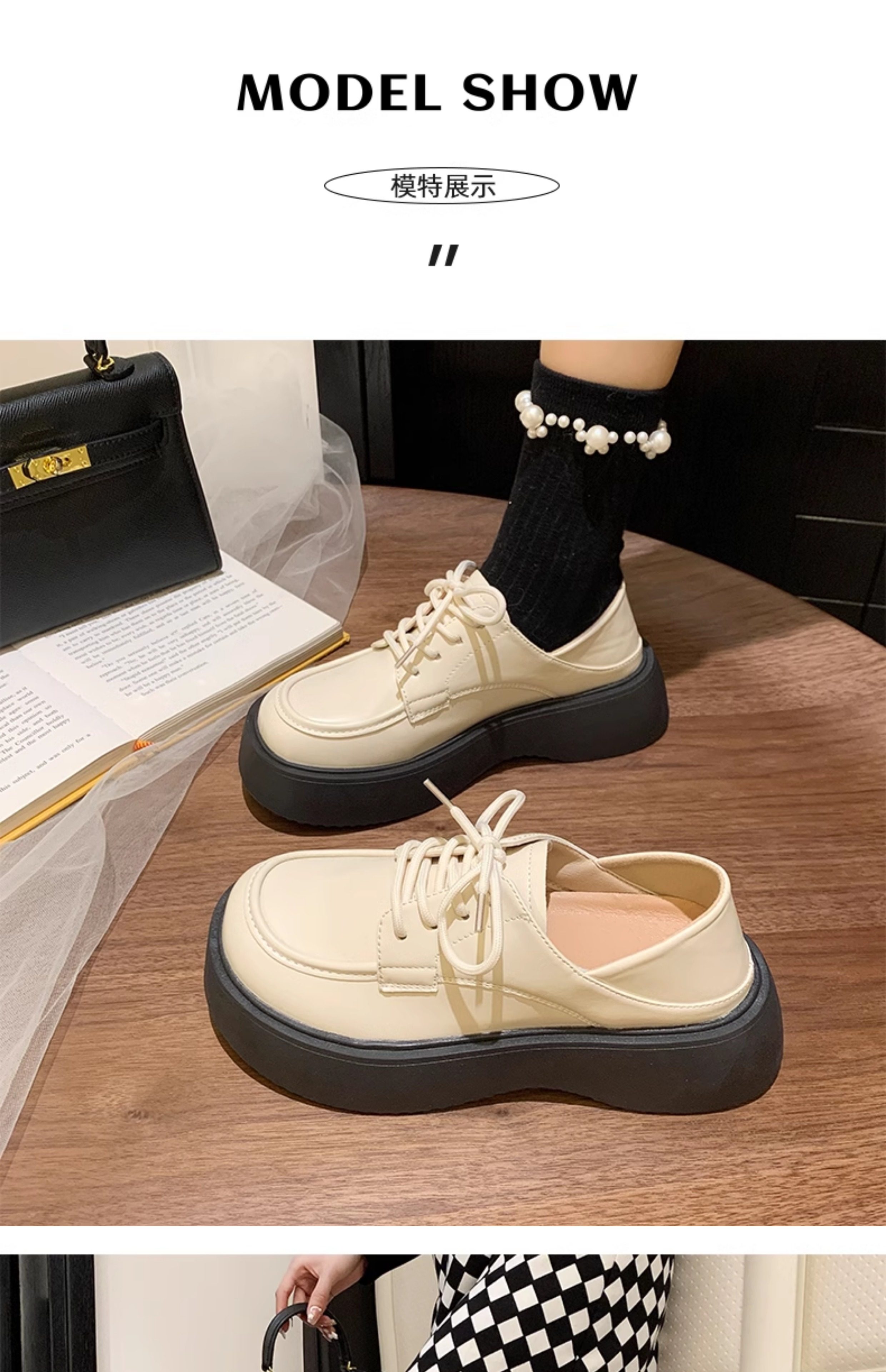 Высокая черная обувь в английском стиле для кожаной обуви на платформе, в британском стиле, осенняя