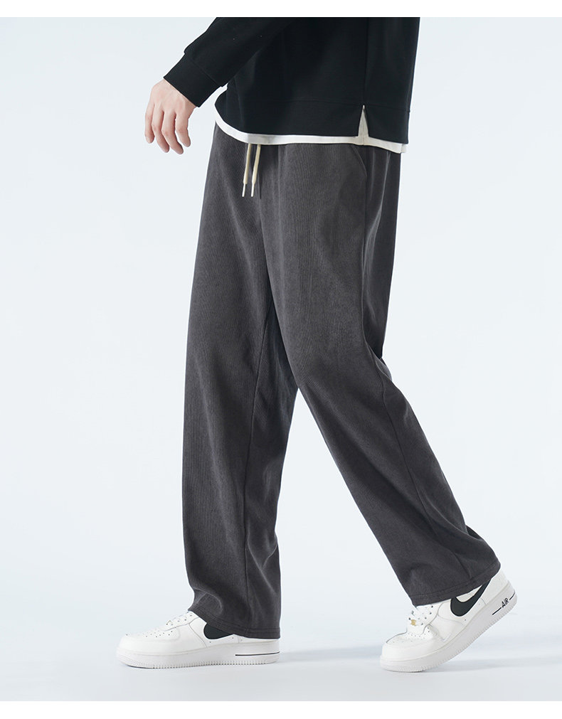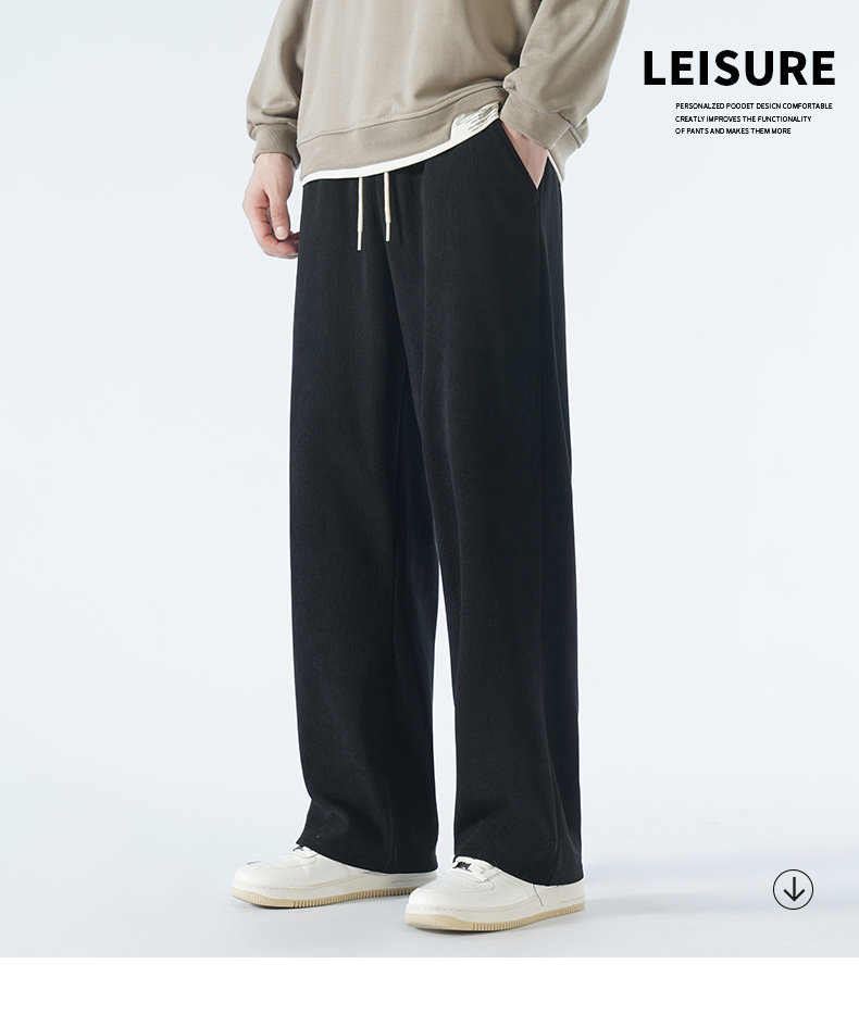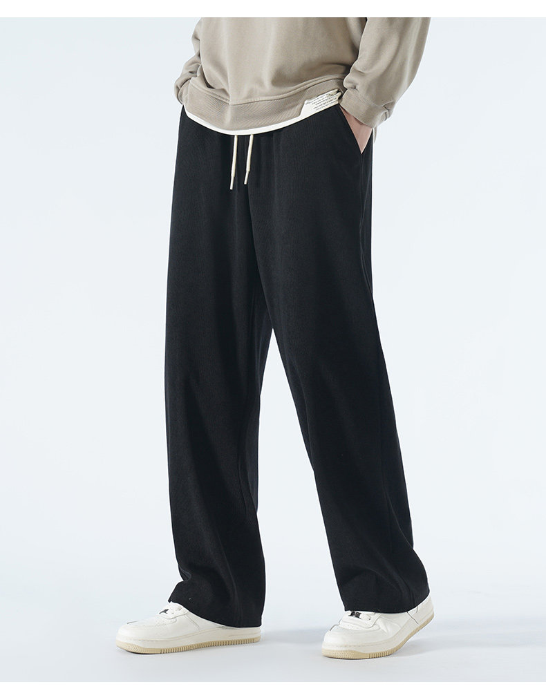Осенние спортивные вельветовые универсальные черные штаны для отдыха, свободный прямой крой