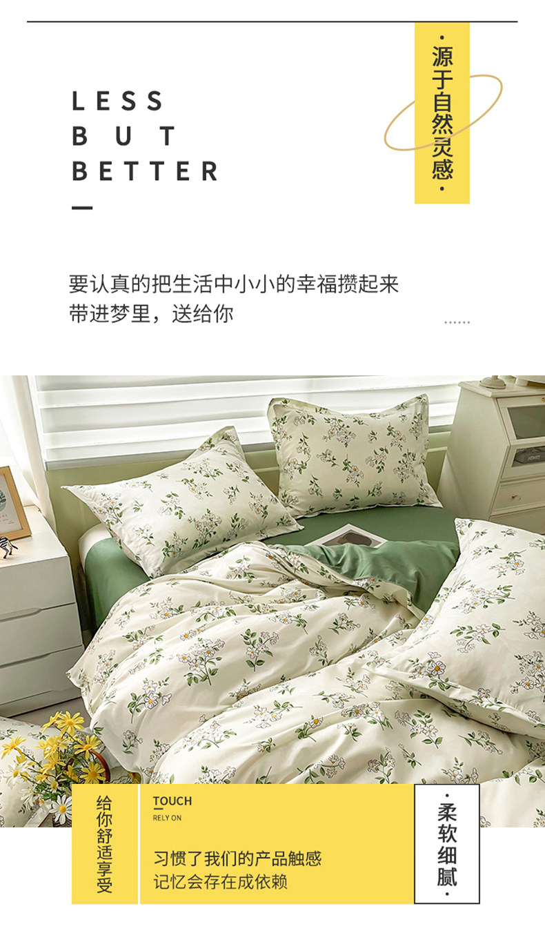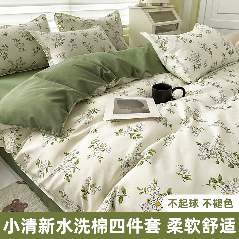 Покрывало, хлопковый комплект, свежая простыня для школьников и студентов, пододеяльник, 4 предмета, постельные принадлежности